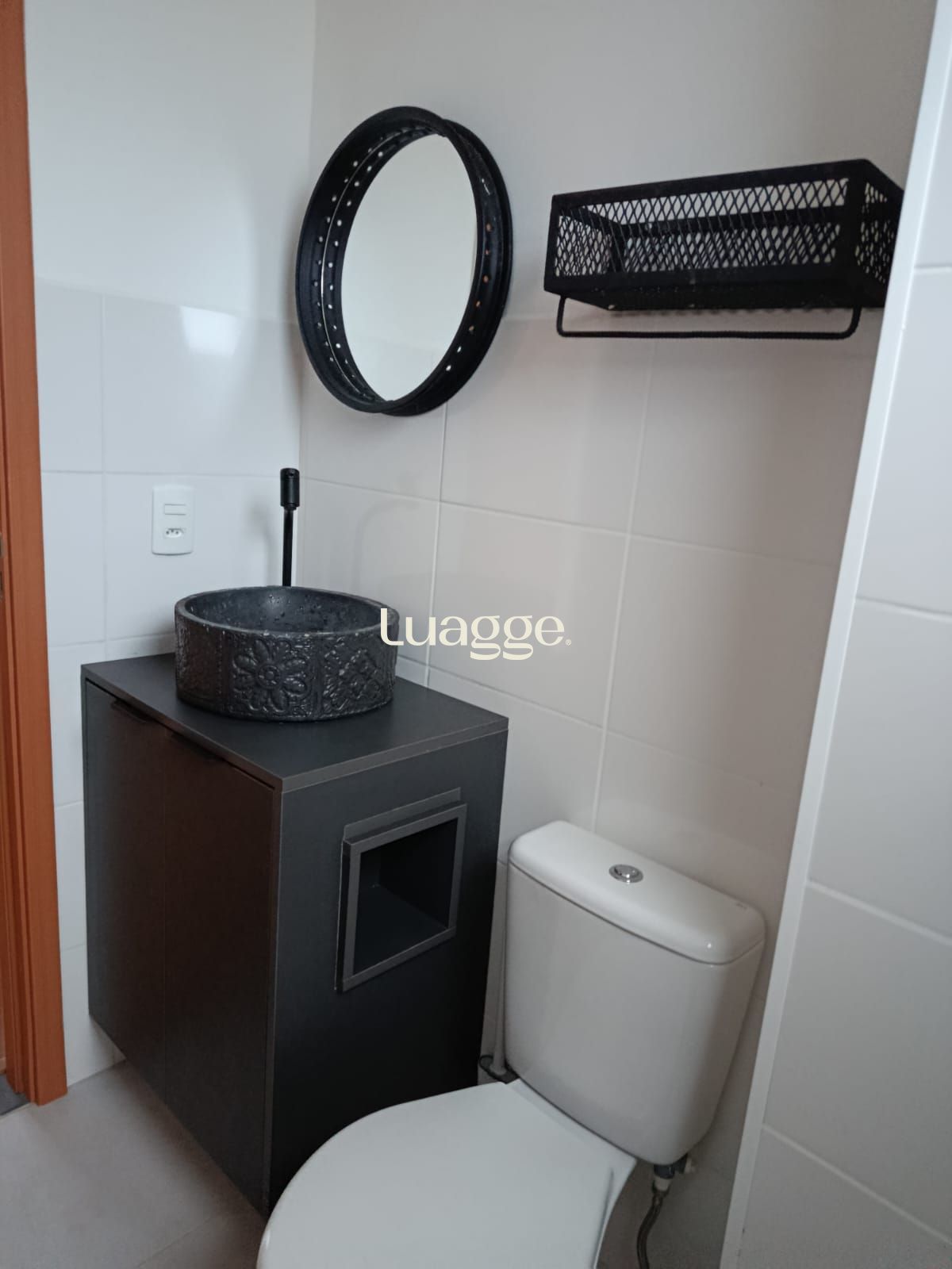 Banheiro com Balcão sob medida; Cuba de sobrepor em concreto artesanal; Torneira preta com abertura 1/4 de volta; Espelho e Iluminação Plafon de led; Chuveiro à gás. ACEITA COMPRA ASSISTIDA