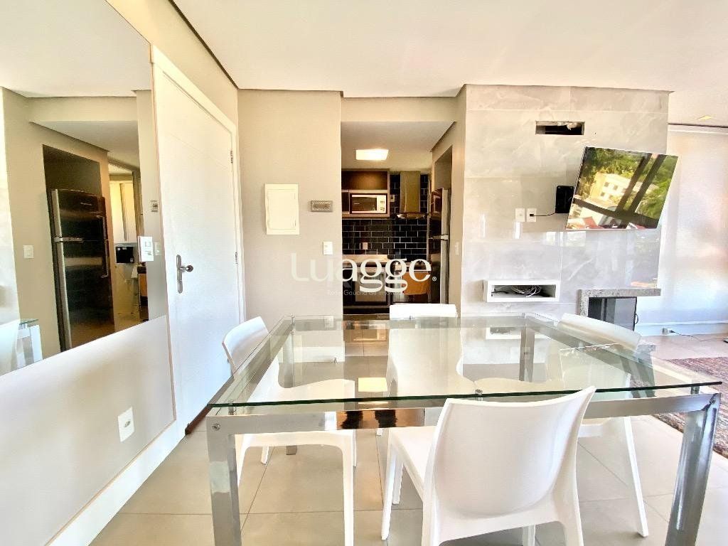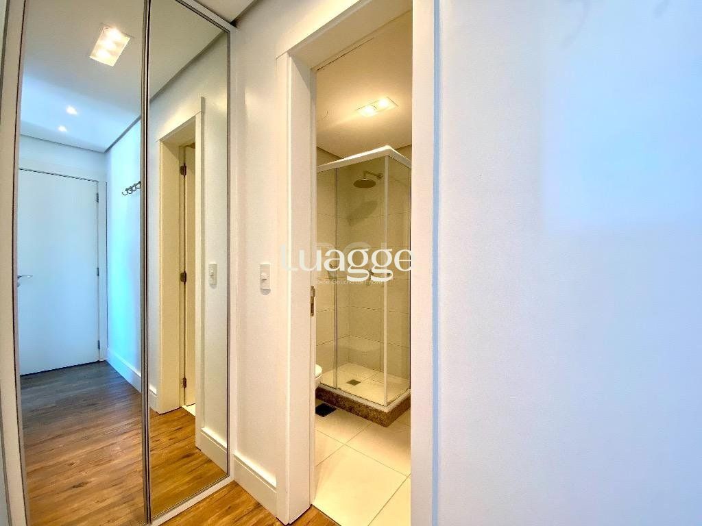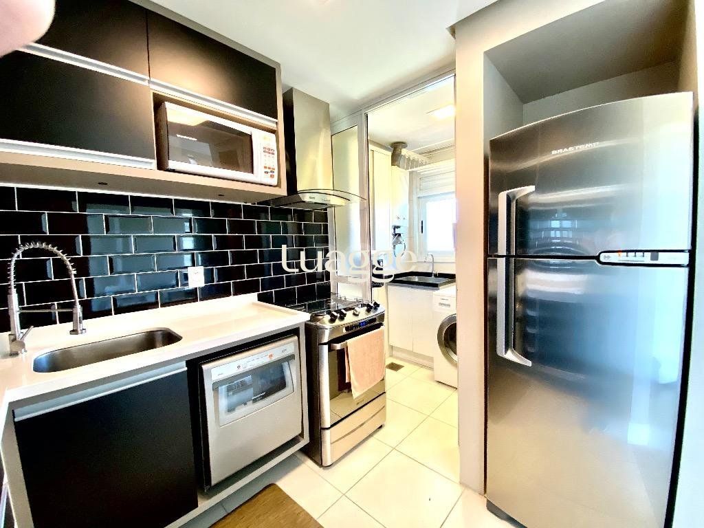 Mobiliado e decorado em alto padrão, conta com cozinha gourmet, área de serviço, dois banheiros, amplo living 2 ambientes com uma vista deslumbrante e ótima posição solar. Lareira, Home Office Space, sala de jantar. Tudo com muito bom gosto e ótimo acabamento. A suíte é ampla e conta com bastante espaço de armários. O edifício conta com infraestrutura completa: segurança total, com portaria 24hs com guarita blindada, videomonitoramento e portão de acesso por eclusa; espaço kids; pracinha playground; academia, salão de festas para 50 pessoas, espaço gourmet com churrasqueira externa e forno de pizza; piscina com borda infinita e vista espetacular