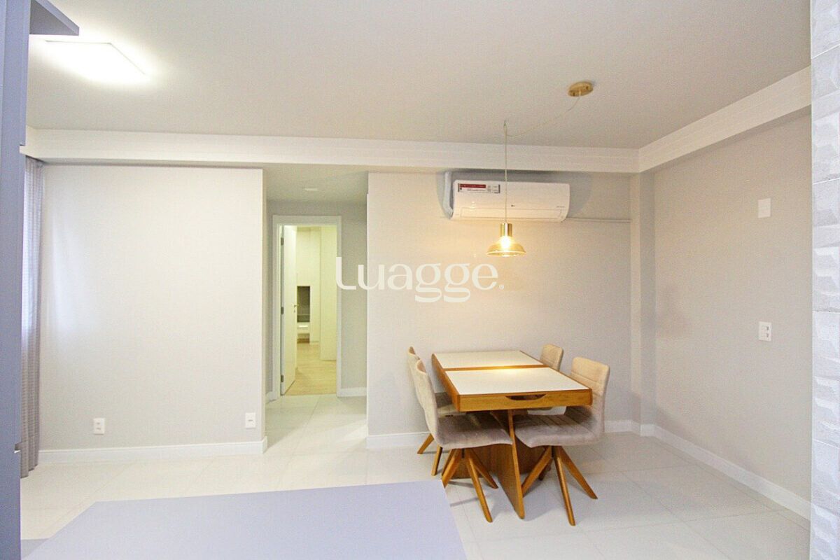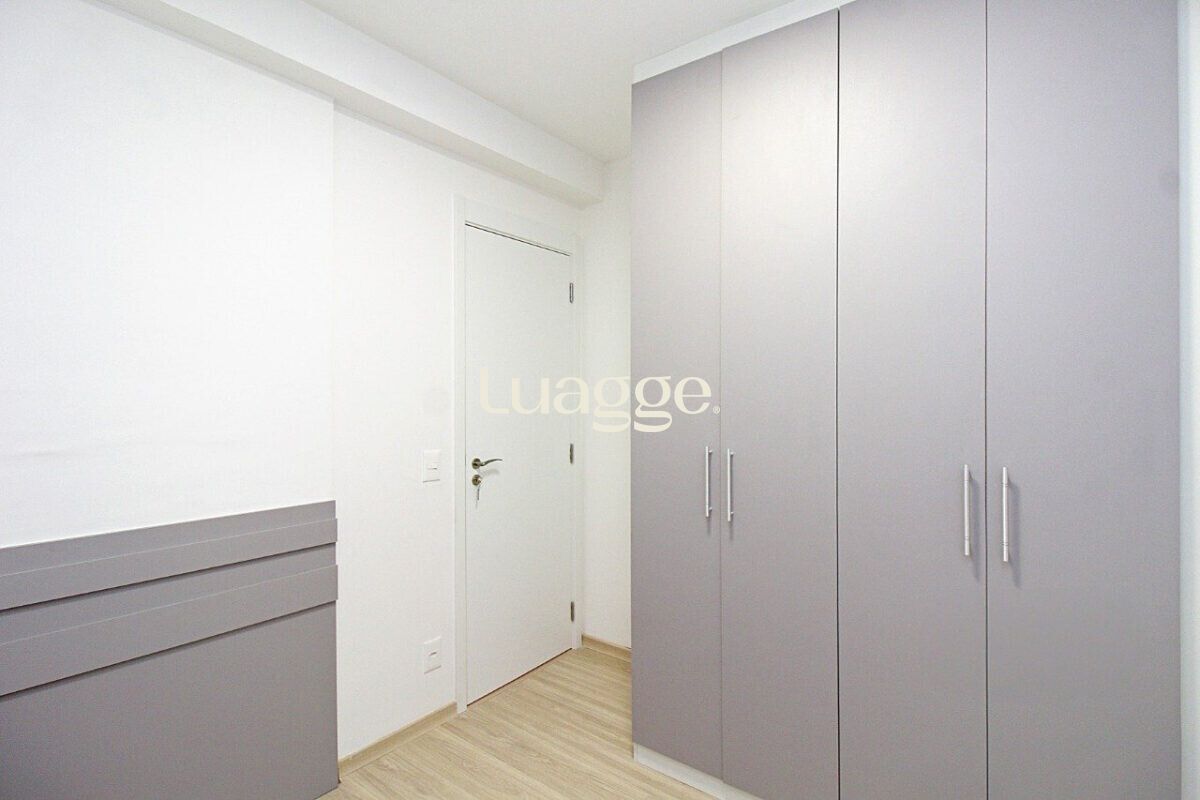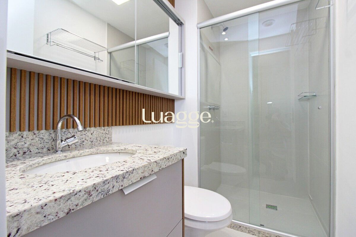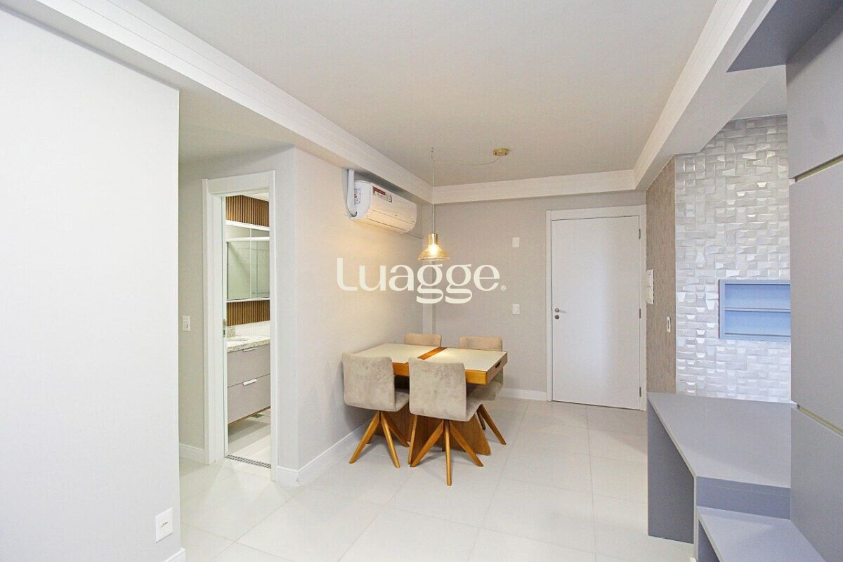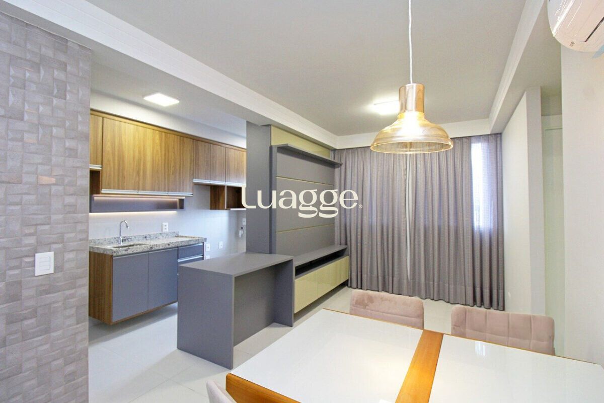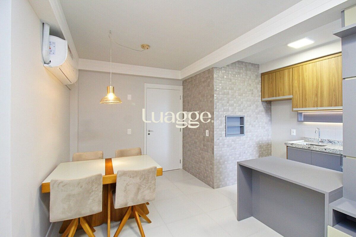 O imóvel conta com sala ampla, dois dormitórios, sendo uma suíte, além de banheiro social, ambos com box de vidro. A cozinha americana, integrada à área social, possui churrasqueira e área de serviço funcional.