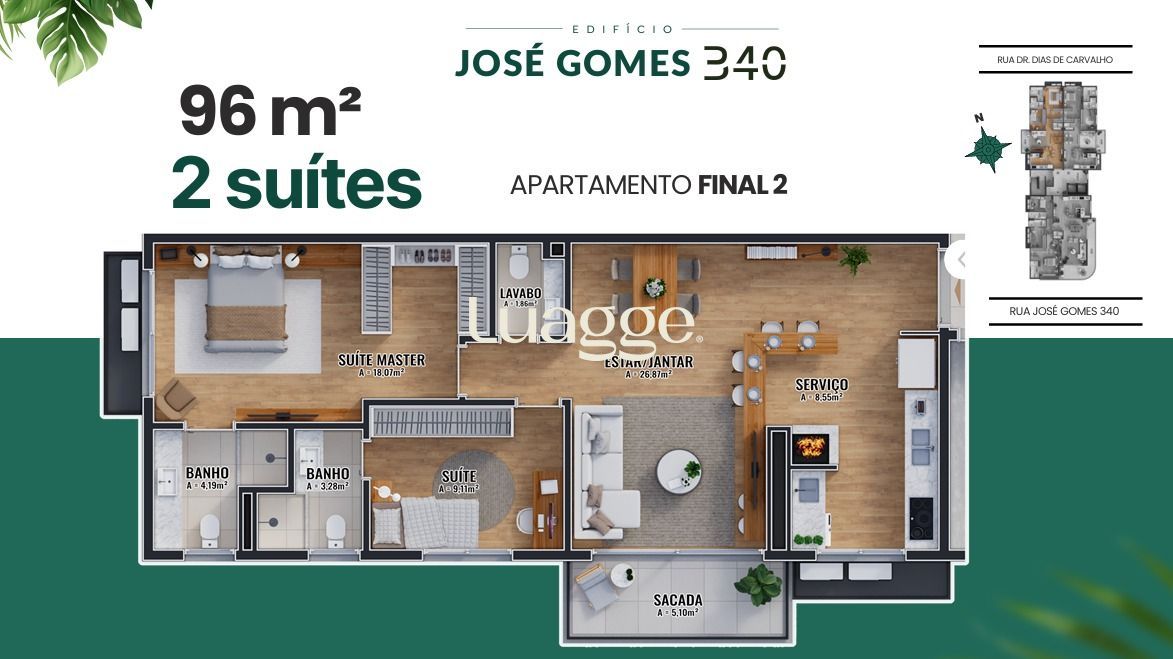 Ótimo e amplo apartamento no Empreendimento José Gomes, previsão de entrega para início de 2028 . Unidade com amplo living para 2 ambientes com sala de estar e sala de jantar, ampla sacada de frente em L, 3 dormitórios sendo 3 suítes, lavabo, cozinha espaçosa com churrasqueira e área de serviço separada. Espera para instalação de Splits no living e nas suítes. Todas as peças com forro de gesso. Piso vinílico no living e dormitórios, e porcelanato na cozinha, banheiros e sacada. Espera para instalação de Junker. Imóvel de frente com ótima vista e sol da tarde. Possui 2 vaga de garagem cobertas e escrituradas (lado a lado). Condomínio com hall de entrada, pilotis, bicicletário, carregador para carro elétrico, gás central e água com consumo individual, elevadores, academia, salão de festas com terraço, rooftop com salão de festas e estar social, jardim. Localizado em ótima região próximo das Avenidas Otto Niemeyer e Wenceslau Escobar, a poucos minutos do Shopping Paseo e do Zaffari, com todos os recursos próximos. Solicite mais informações.