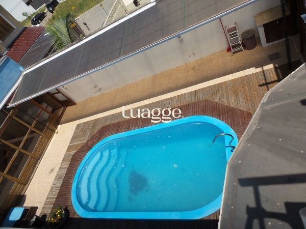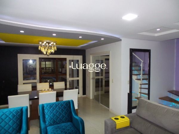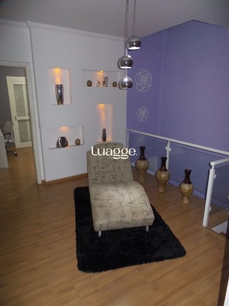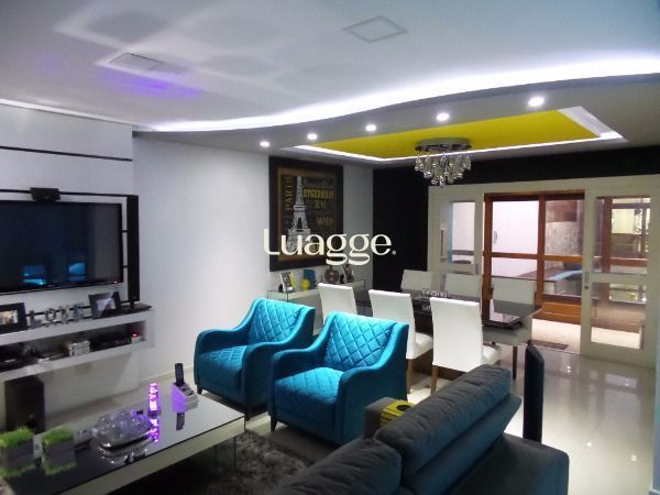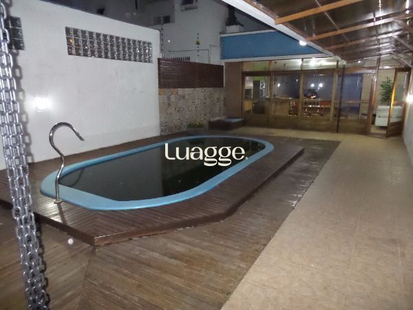 BELO sobrado 03 dormitórios, sendo uma suíte com closet e sacada, estar íntimo com banheiro social, todos os dormitórios com sacada, living 2 ambientes com lareira, churrasqueira, piscina e garagem para 2 carros; e mais um salão de festas nos fundos com entrada independente, vaga para 4 carros, telão, churrasqueira, bancada americana, lavabo, possibilidade de construir no segundo pavimento. Confira!