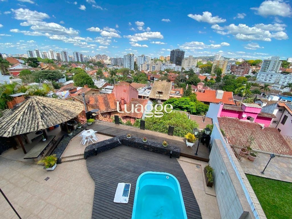 Excelente Residência para Comprar em Zona Nobre de Porto Alegre com 485 Metros, terreno 15x30 e vista Indevassável. A Casa possui 4 andares. No Andar de baixo possui deck com piscina, amplo quiosque com churrasqueira, sauna, banheiro, 3 salas, cozinha, escritório e garagem coberta para 2 carros, além de uma linda vista. No segundo andar lavabo, escritório, 3 salas, sacada em toda extensão das salas cozinha e churrasqueira.