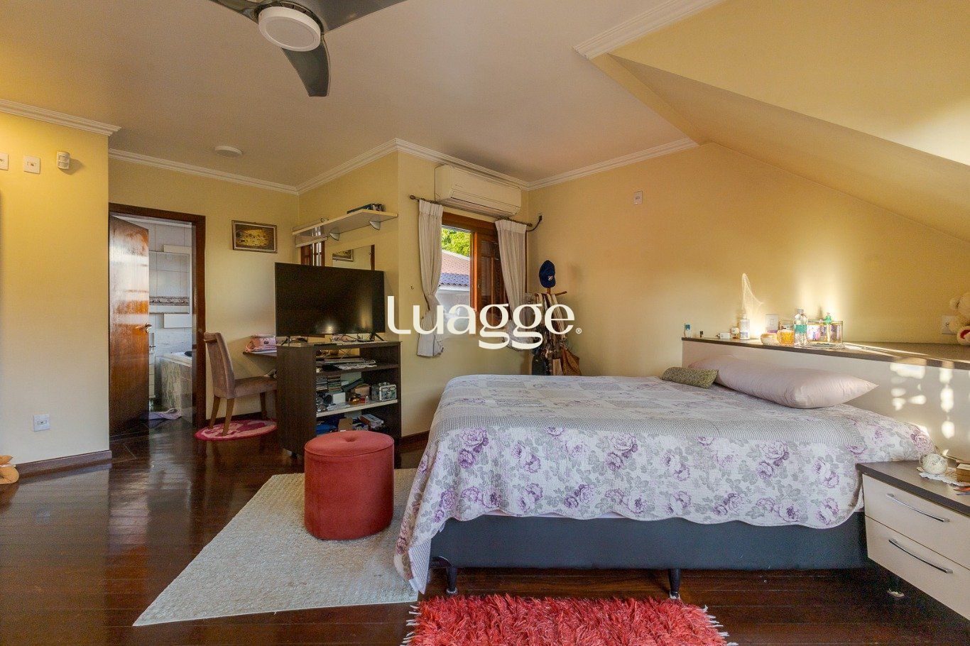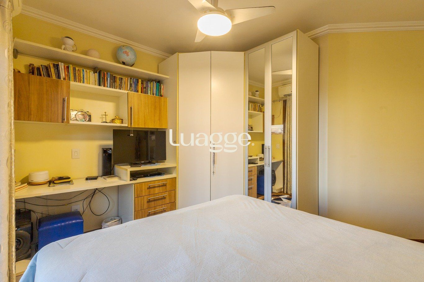 Ampla sala com diversos ambientes. Quartos planejados com sacada, uma suíte com hidromassagem, todos com aberturas grandes.