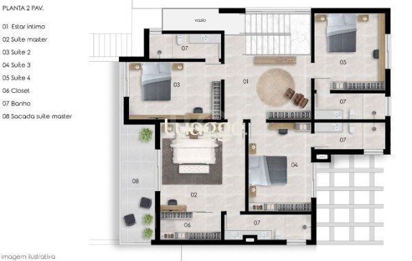 2 andar com estar íntimo, 4 suítes amplas, sendo uma suíte máster com sacada.