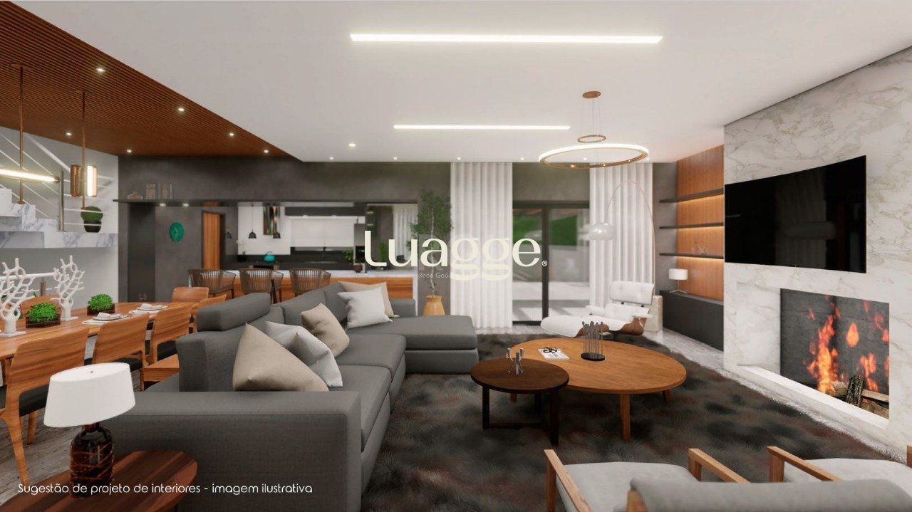 !º andar - living com lareira e sacada integrado com sala jantar, cozinha e espaço gourmet, acesso ao pátio, lavanderia, lavabo.