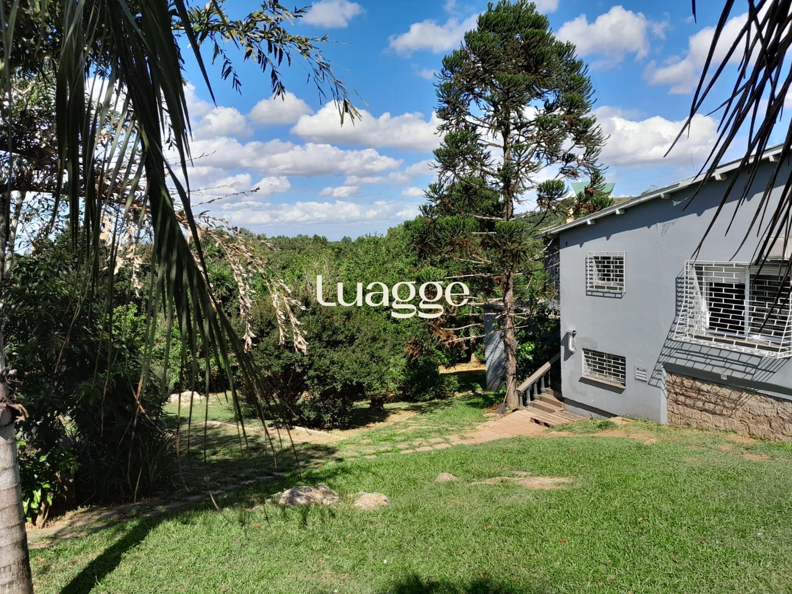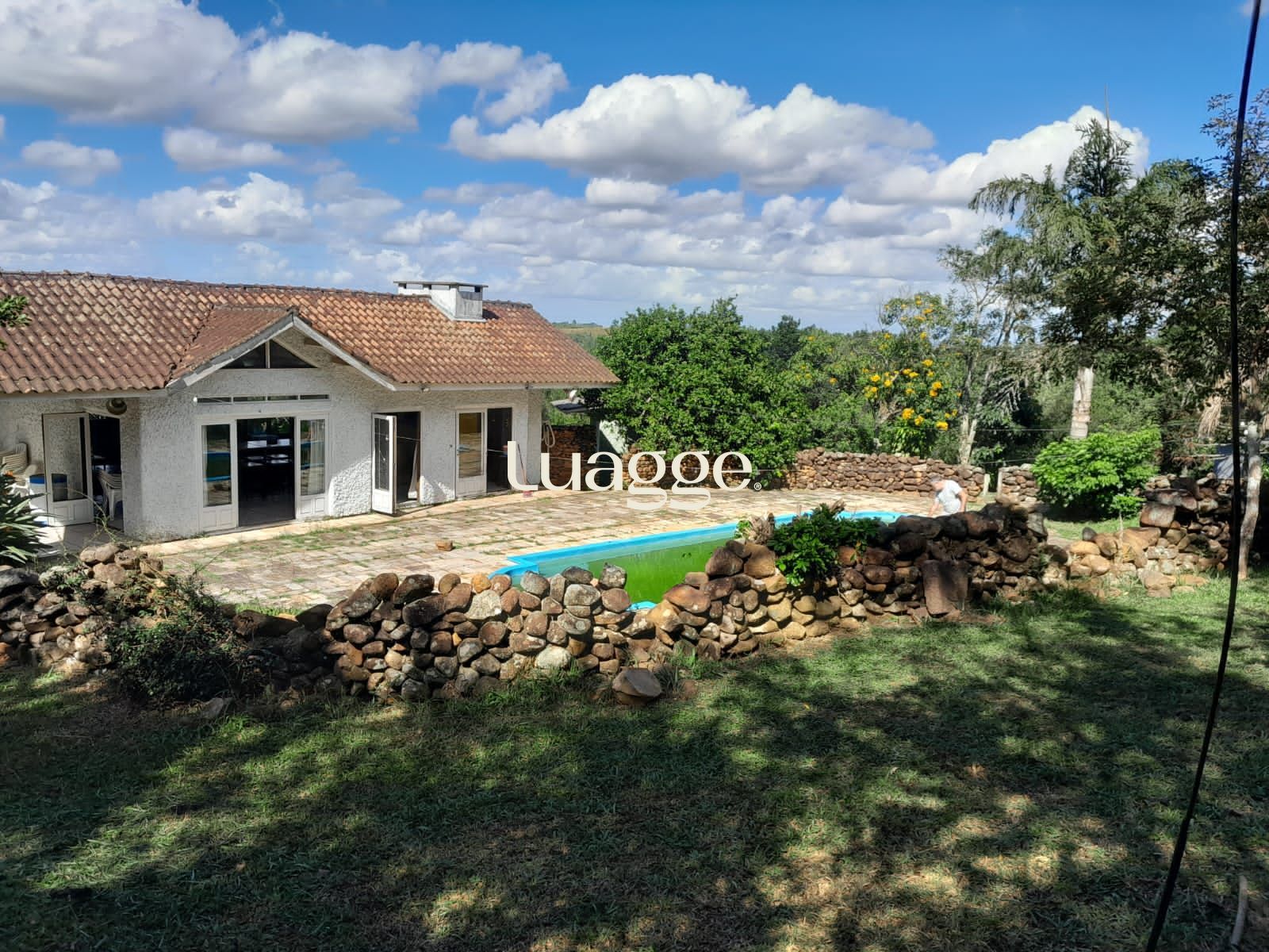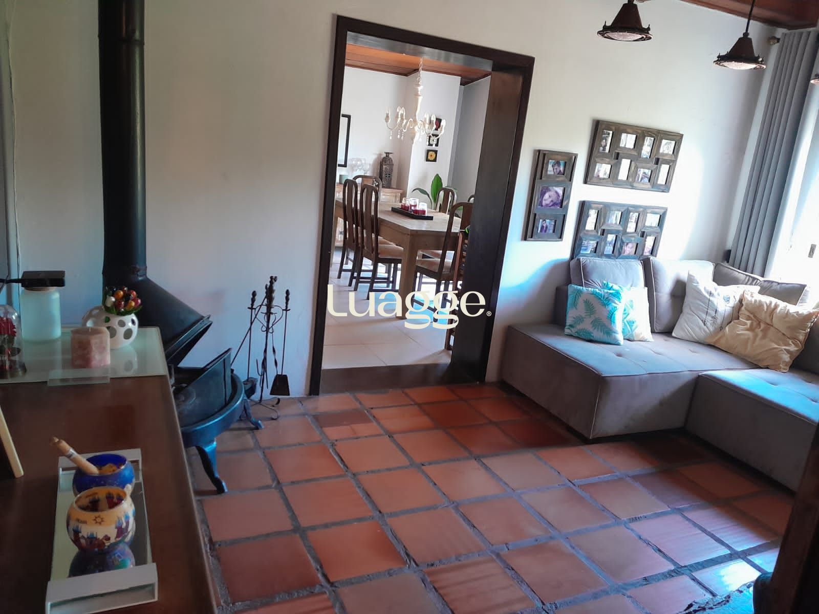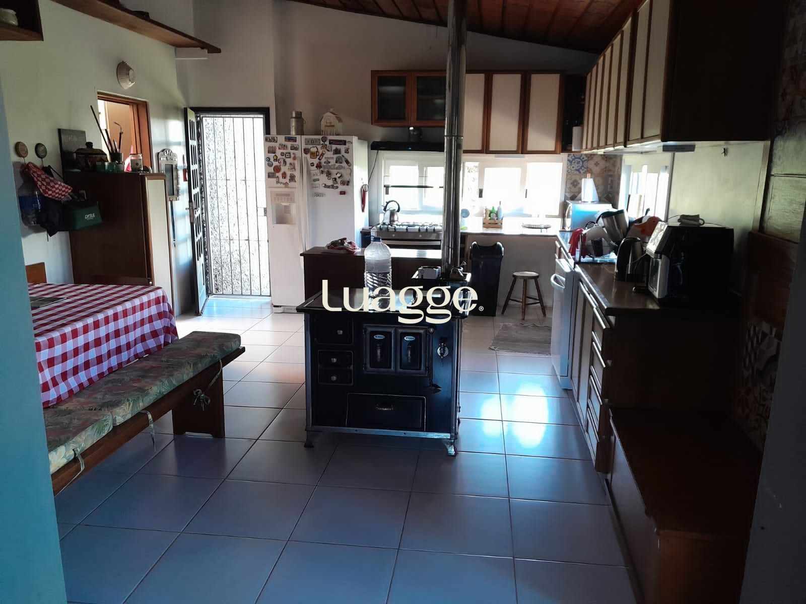 Os espaçosos living com 2 ambientes com lareira, closet, despensa, escritório, cozinha com armários embutidos, lavanderia, fogão a lenha, sala de estar e jantar. Além de uma área de lazer completa com churrasqueira, piscina, salão de festas e jardim. A propriedade também conta com depósito, pátio com canil e árvores frutíferas.