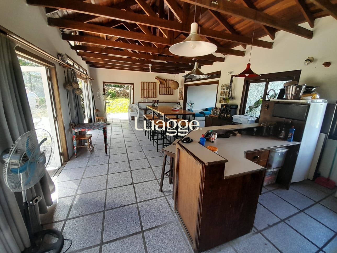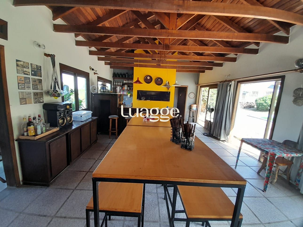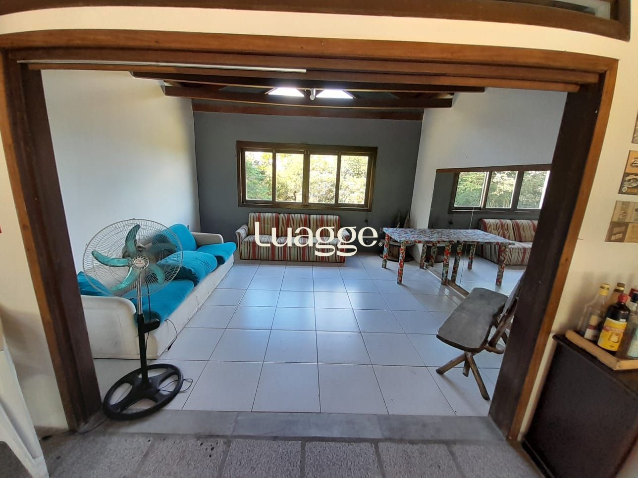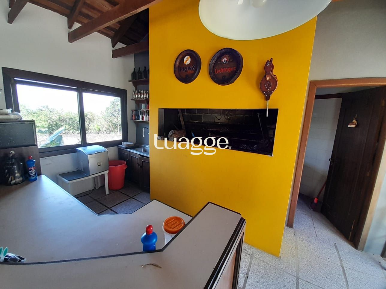 Os espaçosos living com 2 ambientes com lareira, closet, despensa, escritório, cozinha com armários embutidos, lavanderia, fogão a lenha, sala de estar e jantar. Além de uma área de lazer completa com churrasqueira, piscina, salão de festas e jardim. A propriedade também conta com depósito, pátio com canil e árvores frutíferas.