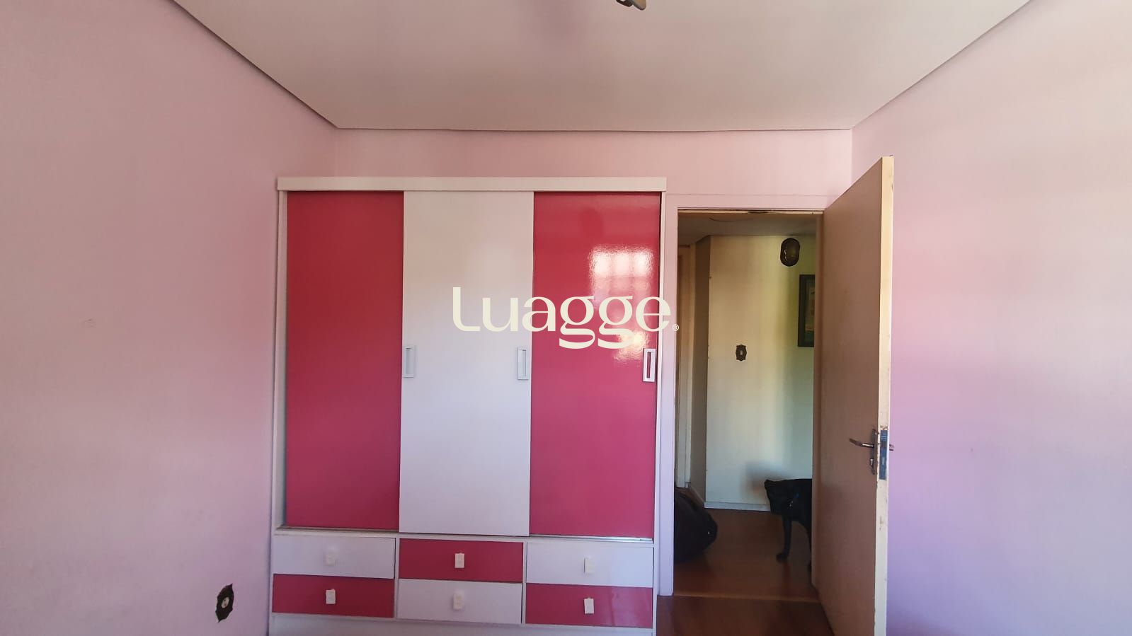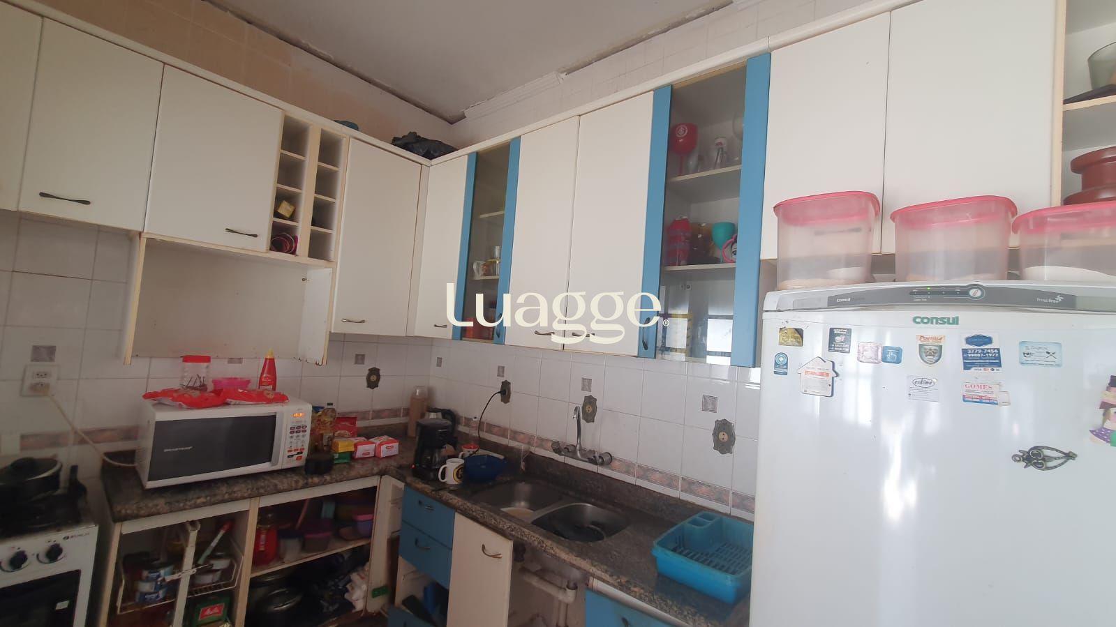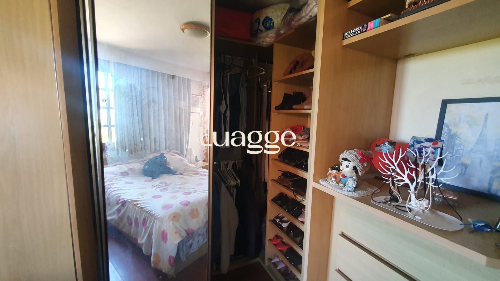 Fica ar condicionado e split, armários na cozinha e na suíte com close pequeno.