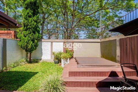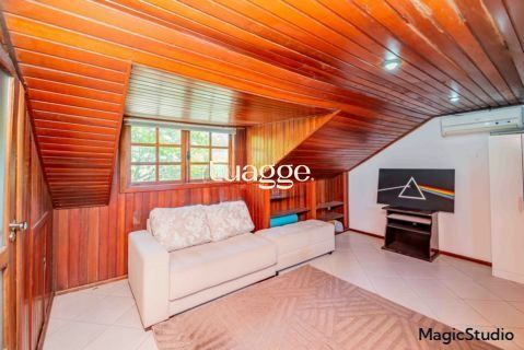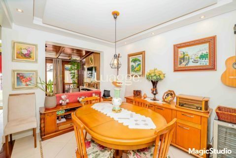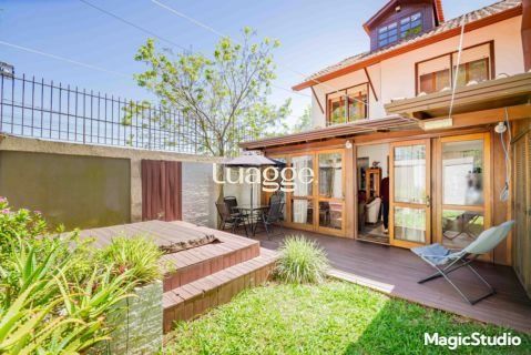 casa de 3 dormitórios em condomínio fechado na zona sul de Porto Alegre, na Rua Eduardo Prado, bairro Cavalhada. A casa conta com gramado e varanda na frente, garagem para dois carros, duas salas de estar e uma sala de jantar, lavabo, cozinha americana com churrasqueira, além de uma varanda nos fundos, pátio e spa. São três dormitórios, sendo uma suíte, e banheiro social. Possui ainda um sótão que pode ser utilizado como sala ou escritório.