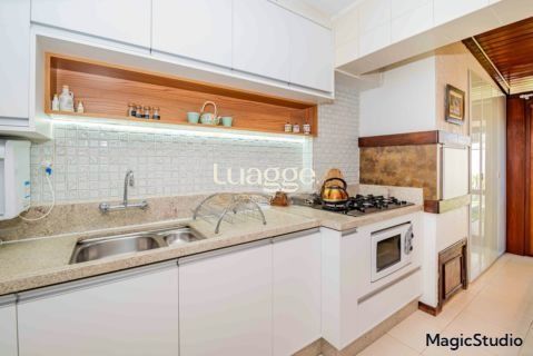 O imóvel conta com armários sob medida e planejados na sala, cozinha, área de serviço, dormitórios e banheiros.
