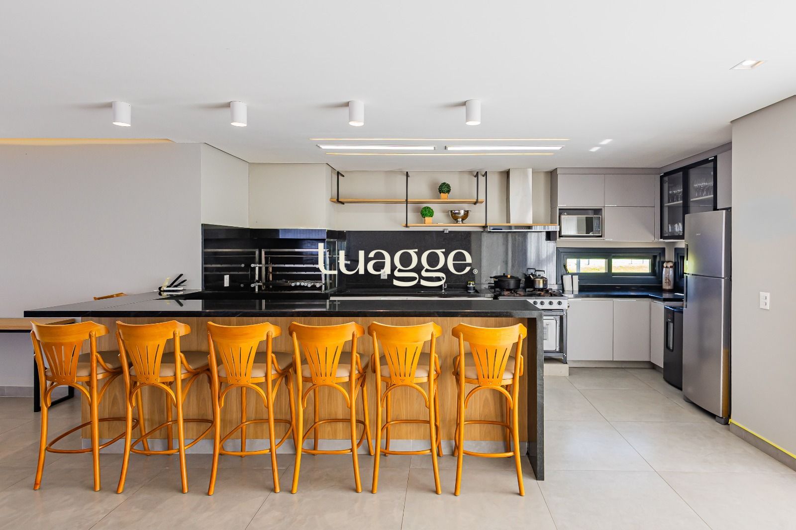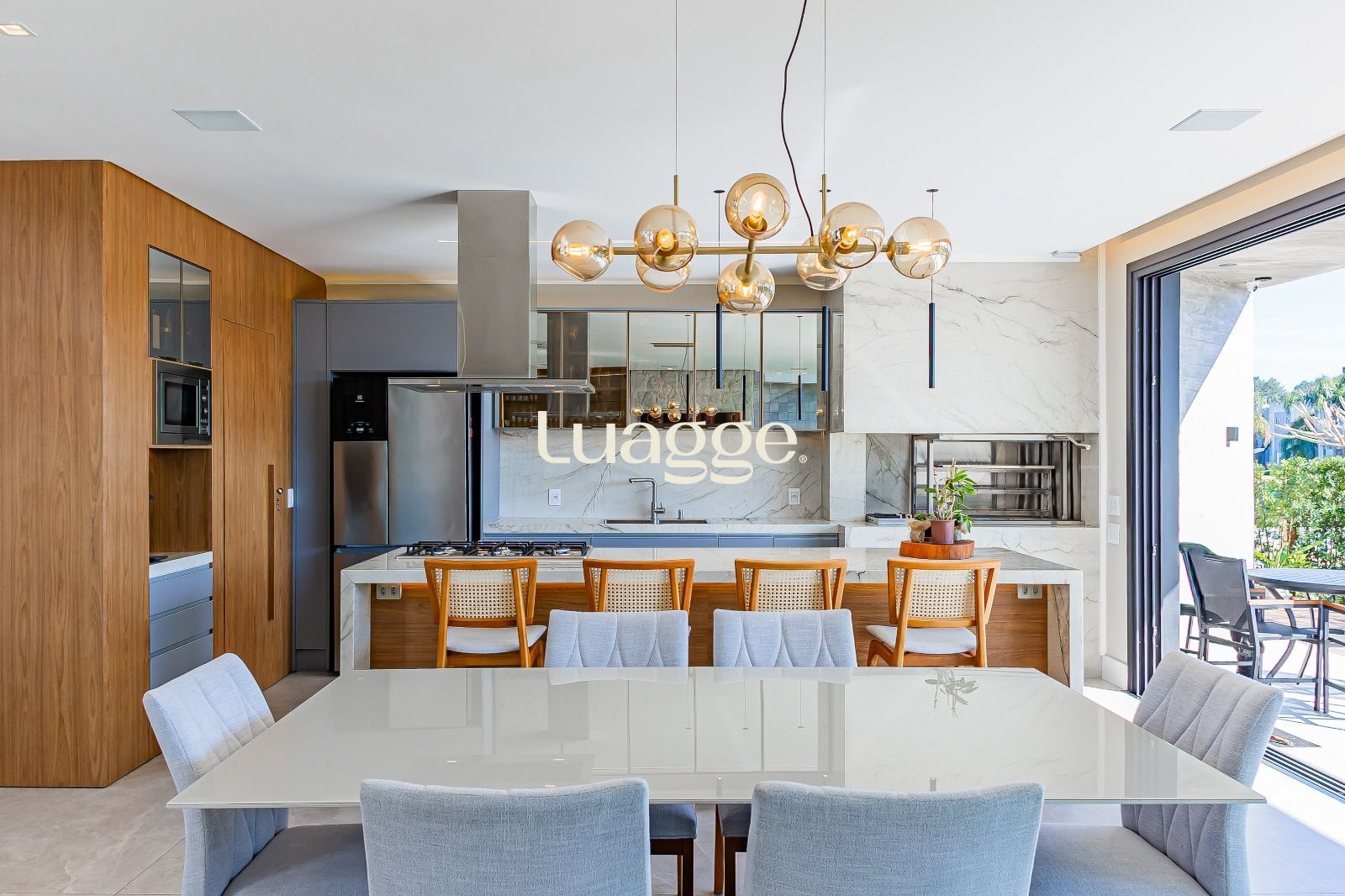 Cozinha americana planejada com churrasqueira