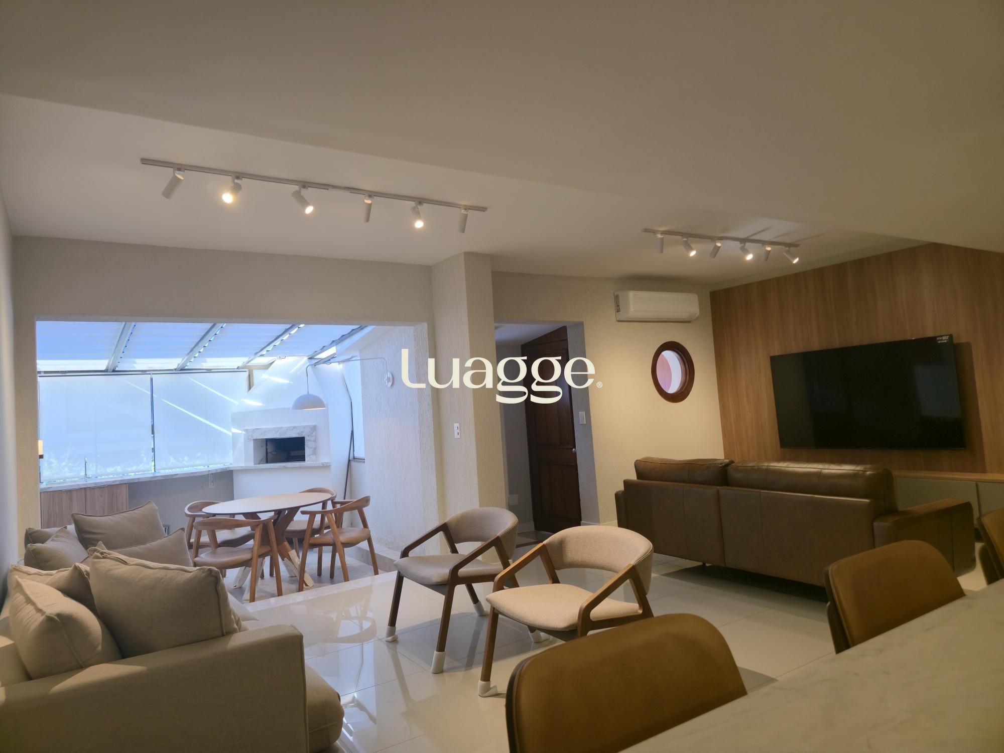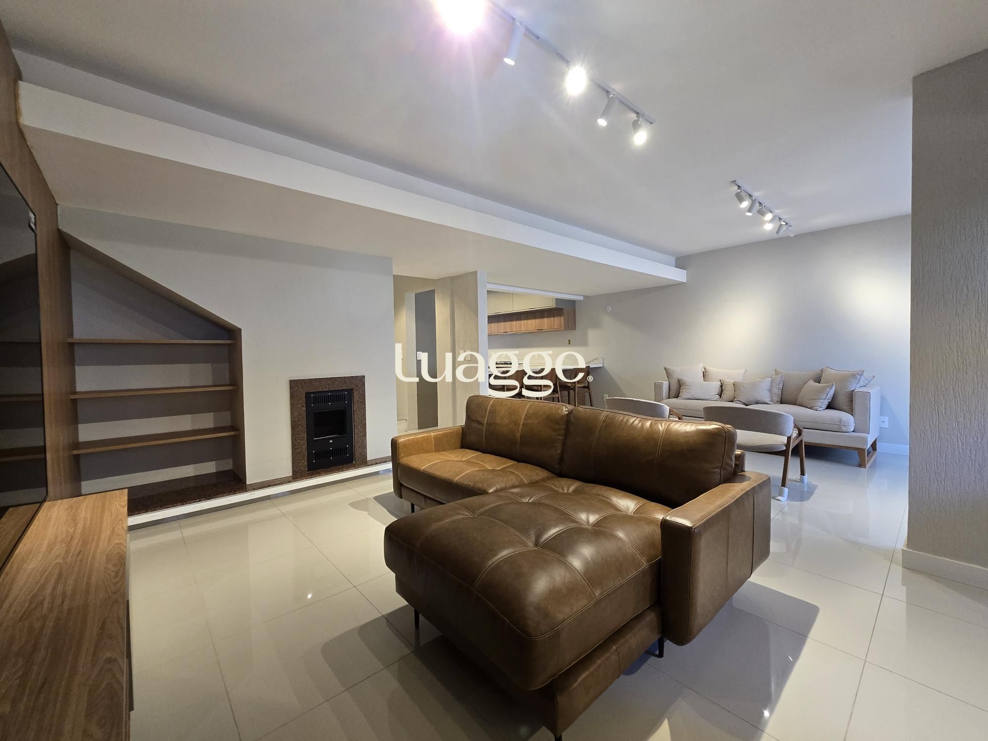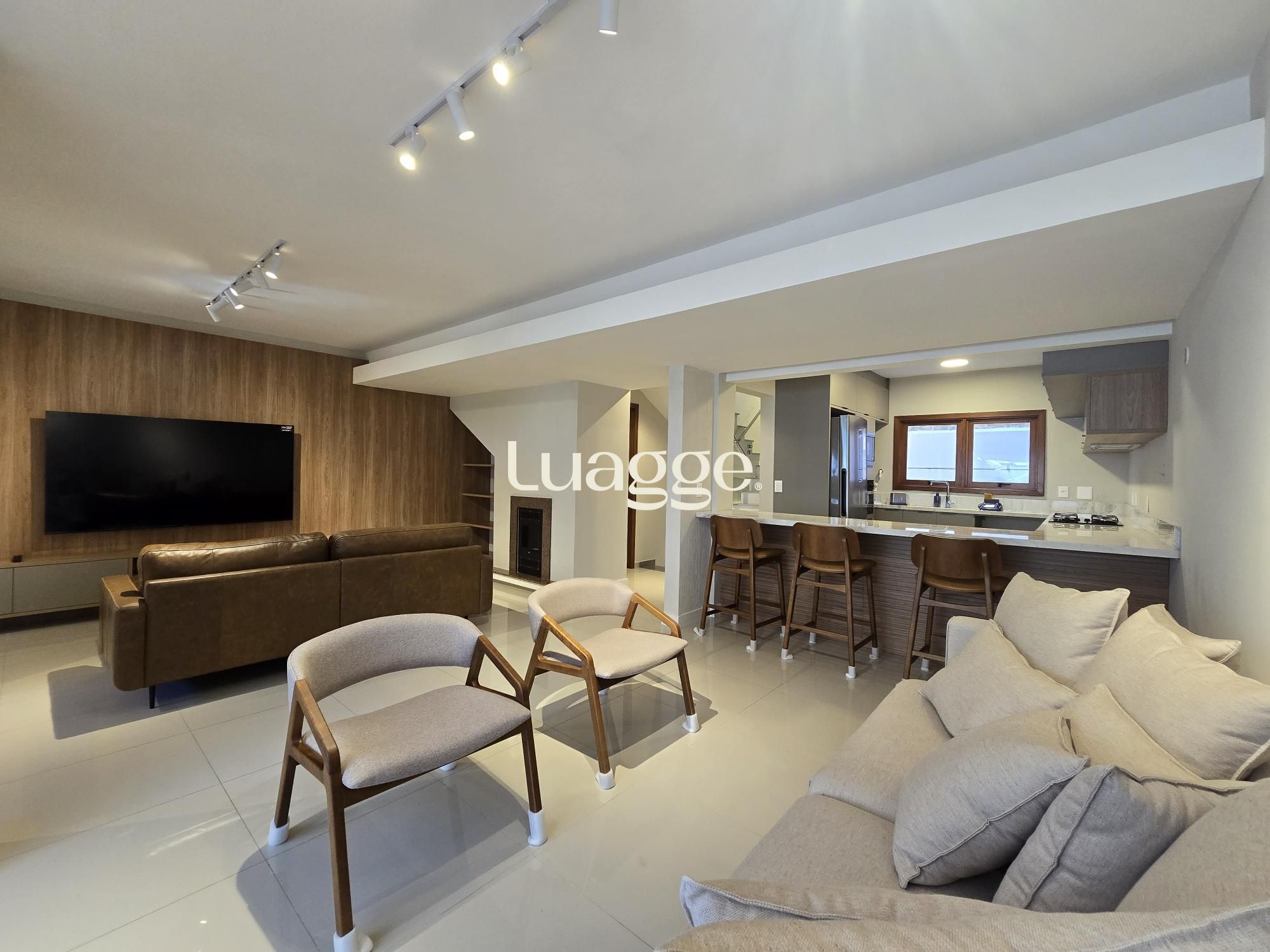 A residência conta com 299m² privativos (385m² totais) distribuídos em três níveis, totalmente planejada e mobiliada por arquitetos renomados. No andar principal destaca-se um living aconchegante para dois ambientes com lareira, complementado por moderna cozinha americana planejada e área de serviço integrada. O lindo espaço gourmet com churrasqueira oferece ambiente perfeito para recepções e momentos em família.