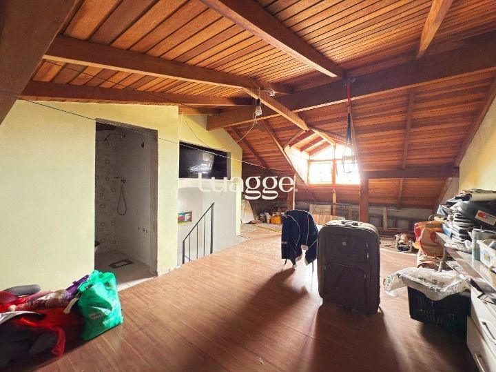 Sobrado com 3 dormitórios, com opção para o 4º no sótão, living amplo para dois ambientes, cozinha americana, lavabo, banheiro social e churrasqueira integrada ao pátio privativo