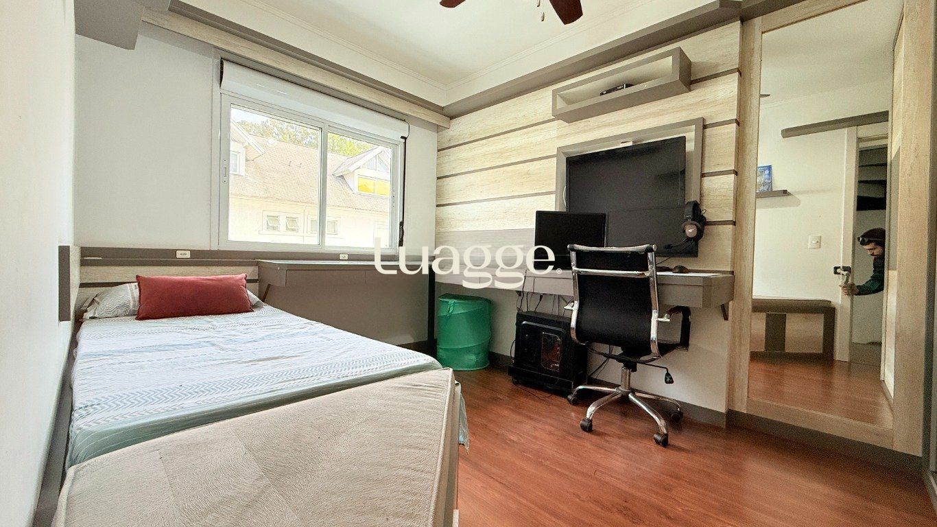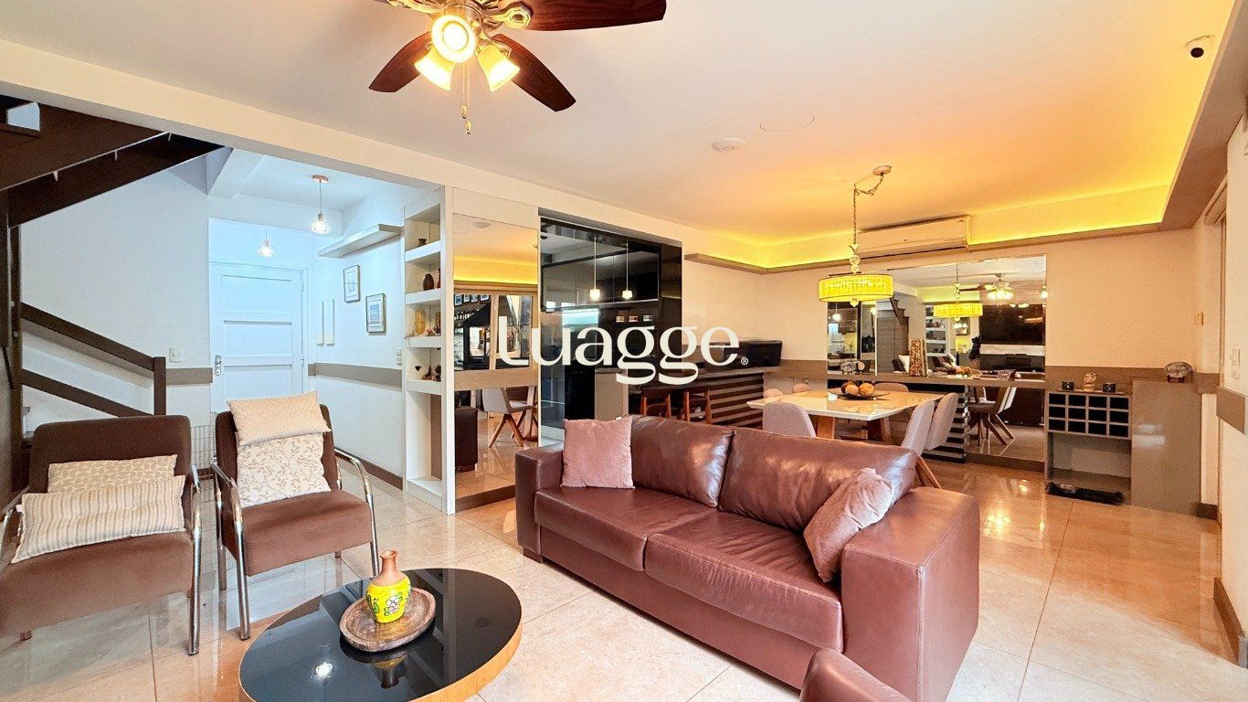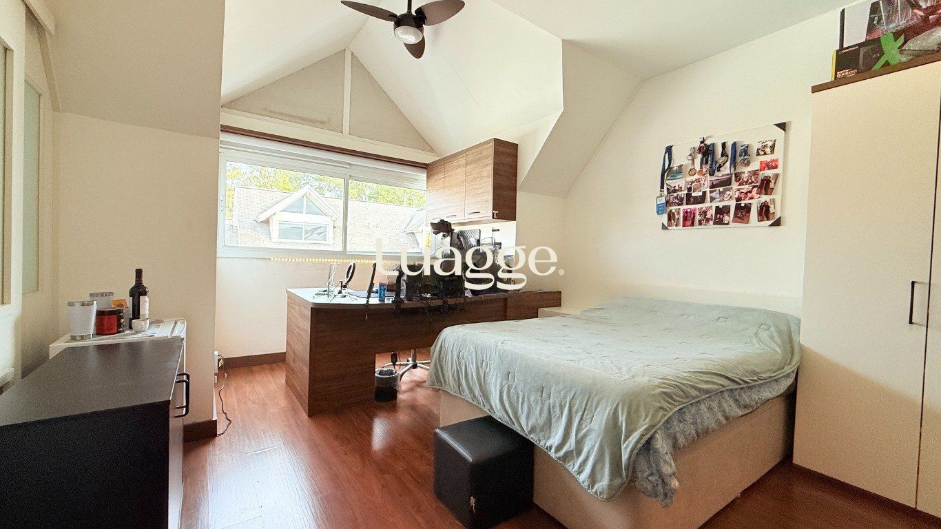 Casa estilo sobrado em condomínio fechado no bairro Agronomia. Com 225 metros privativos. Sendo 4 dormitórios com 2 suítes, todos com ar condicionado. Cozinha americana com móveis planejados e área de serviço separada. Living dois ambientes com lareira e lavabo. Deck fechado com espaço gourmet, churrasqueira com parrilha, persiana solar retrátil e pátio. 02 vaga de garagem com possibilidade de mais 2 sendo carros pequenos na lateral da casa.