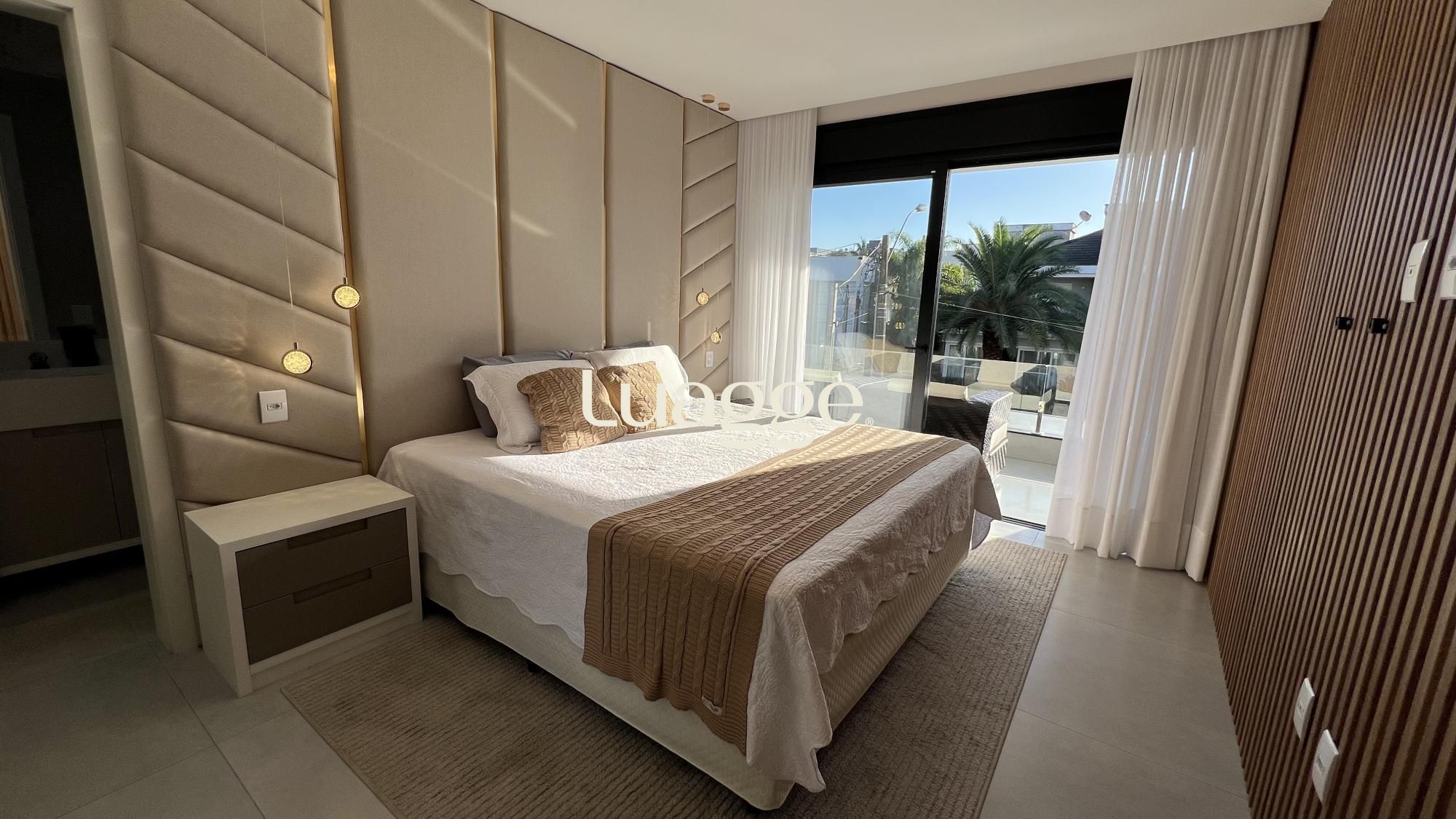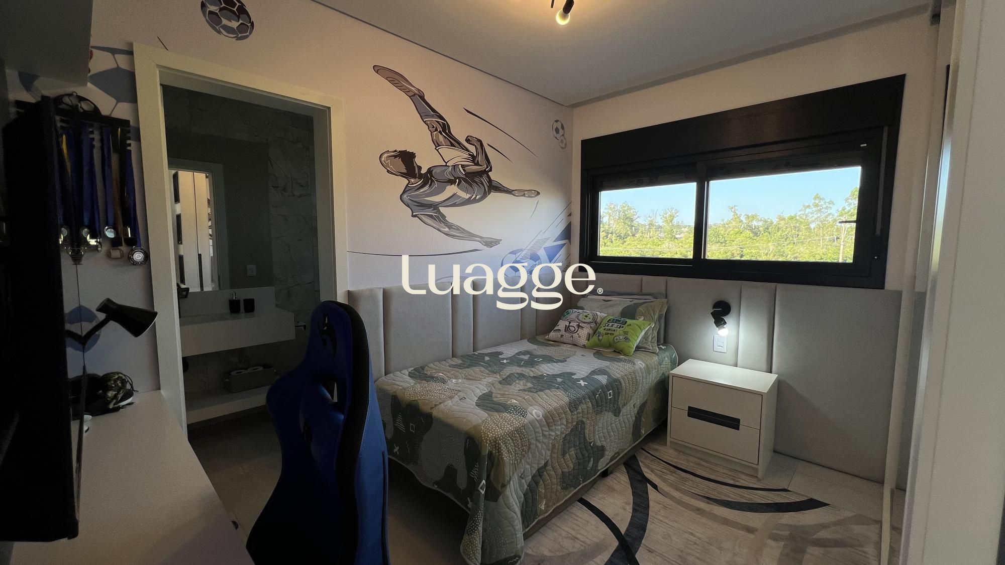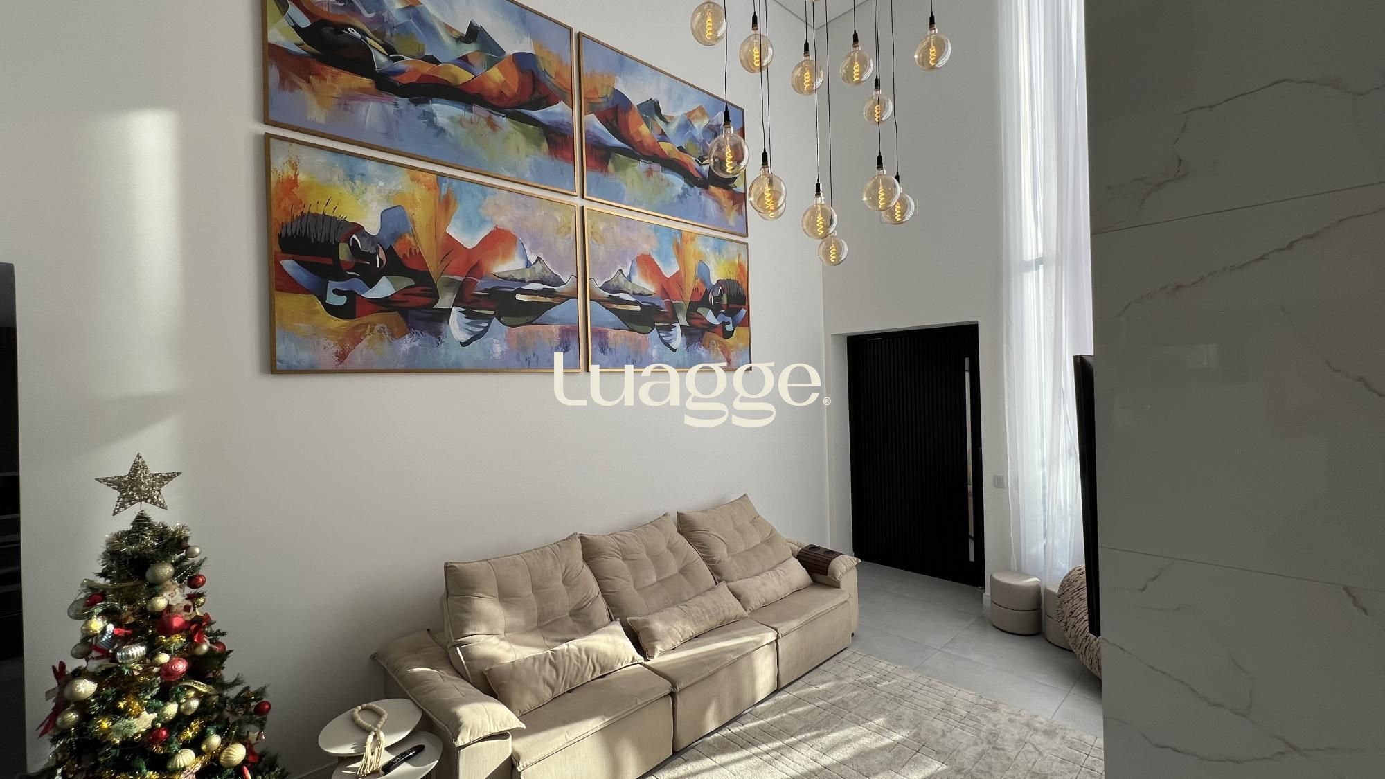 O living com pé-direito duplo proporciona amplitude e luminosidade, integrando-se harmoniosamente aos ambientes sociais e à área de lazer. São três suítes, distribuídas com excelente aproveitamento de espaço, além de cinco banheiros, garantindo conforto e privacidade para toda a família.