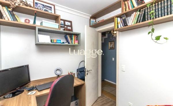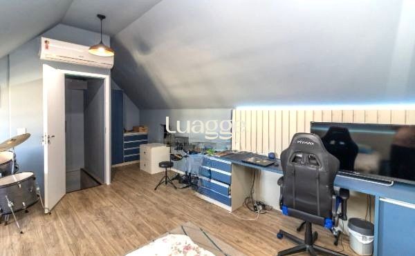 Excelente sobrado no Condomínio Villa Serena, bairro teresópolis, de 3 pavimantos, com 179m² privativos, de 3 dormitórios + sótão, 2 vagas e infra. Possui no andar térreo: sala de estar com sanca de gesso, sala de jantar, lavabo, cozinha americana, área de serviço. Nos fundos possui espaço gourmet coberto com churrasqueira e pátio privativo. No 2º pavimento possui: 3 dormitórios sendo 1 suíte e banheiro social. Ambos banheiros com box de vidro e ventilação natural. No 3º pavimento amplo sótão podendo ser 4º dormitório/escritório ou sala de TV. Garagem coberta para 2 carros em frente da unidade. Imóvel com peças amplas, muito ventilado e iluminado. Ficam móveis planejados. Condomínio com infra estrutura completa de lazer e segurança. Localizado em ótima região, a poucos minutos do Bourbon Teresópolis. Aceita financiamento. Agende já uma visita.