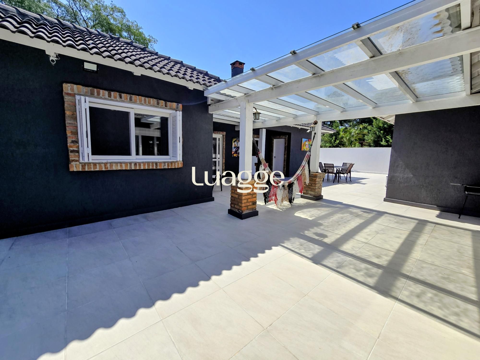 Venha conhecer esta linda casa térrea, com gabinete e 4 suites, uma delas com closet e lareira.