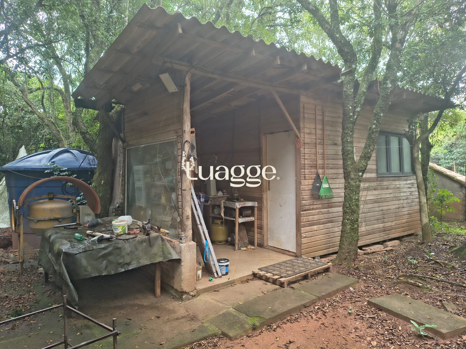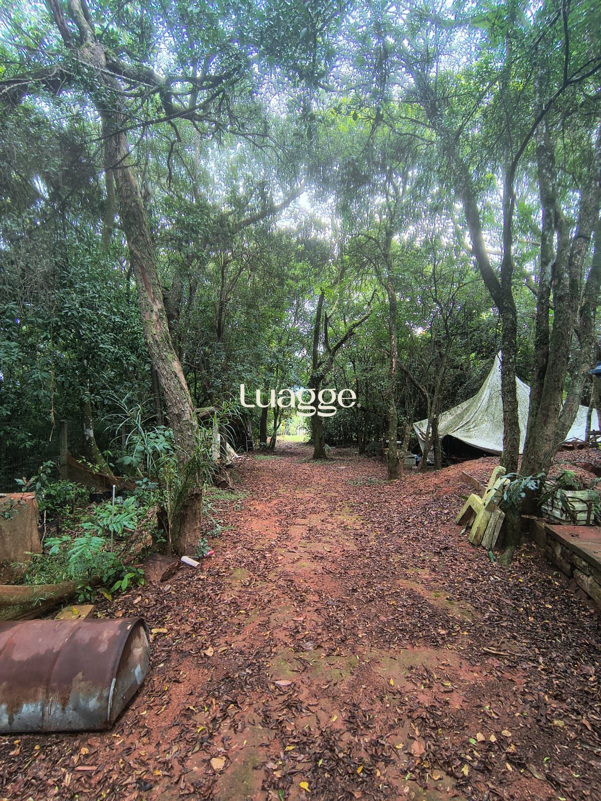 O terreno é bastante arborizado, com diversas árvores frutíferas já produzindo, além de amplo espaço para horta ou projetos de cultivo.