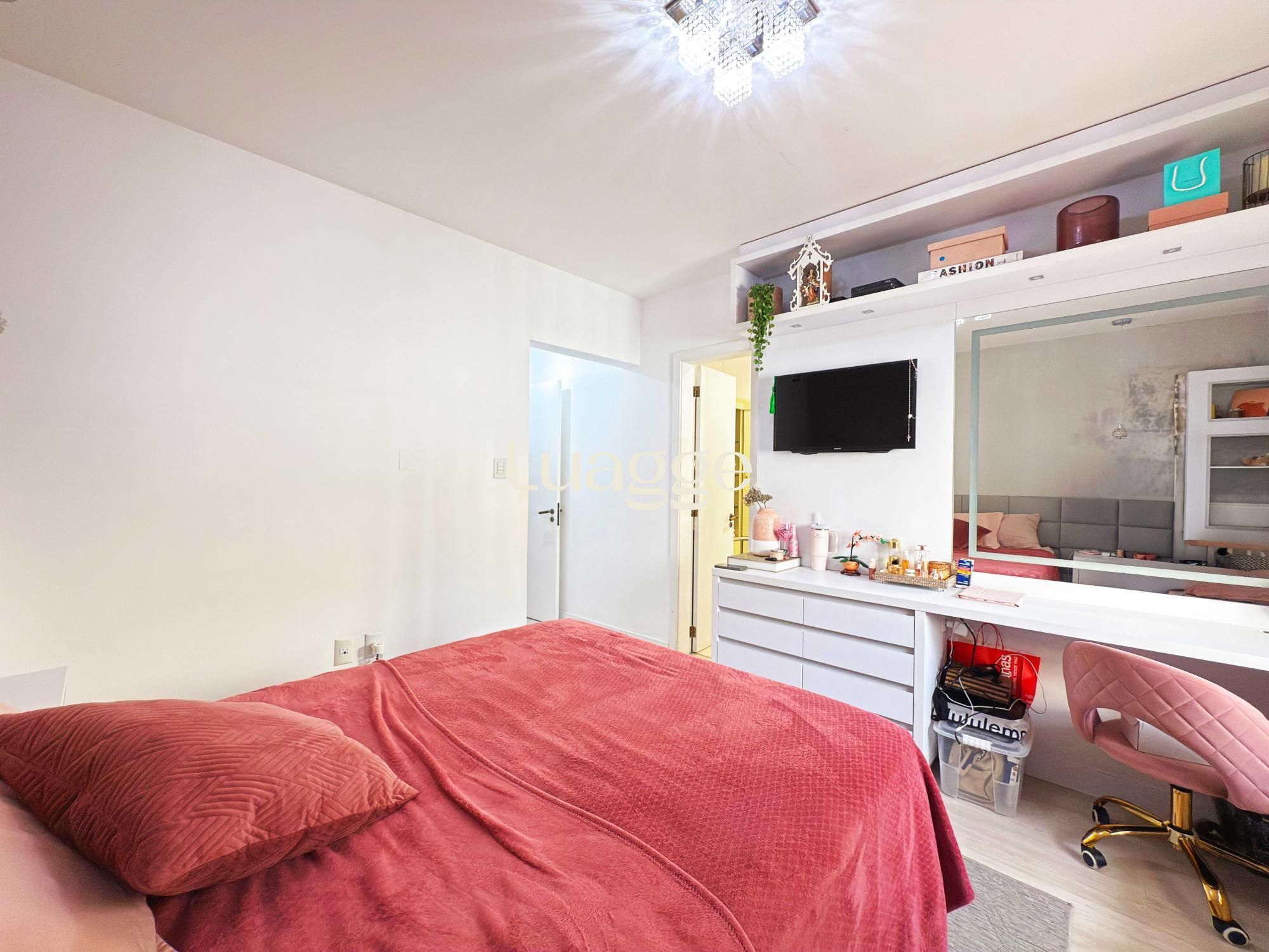 Parte privativa com 3 espaçosas suites (piso laminado), sendo uma delas suíte de casal com closet, banheira de hidro e sacada, e as outras duas suítes de solteiro, uma delas também com closet. Garagem para 4 carros, 2 cobertos e outros 2 descobertos.