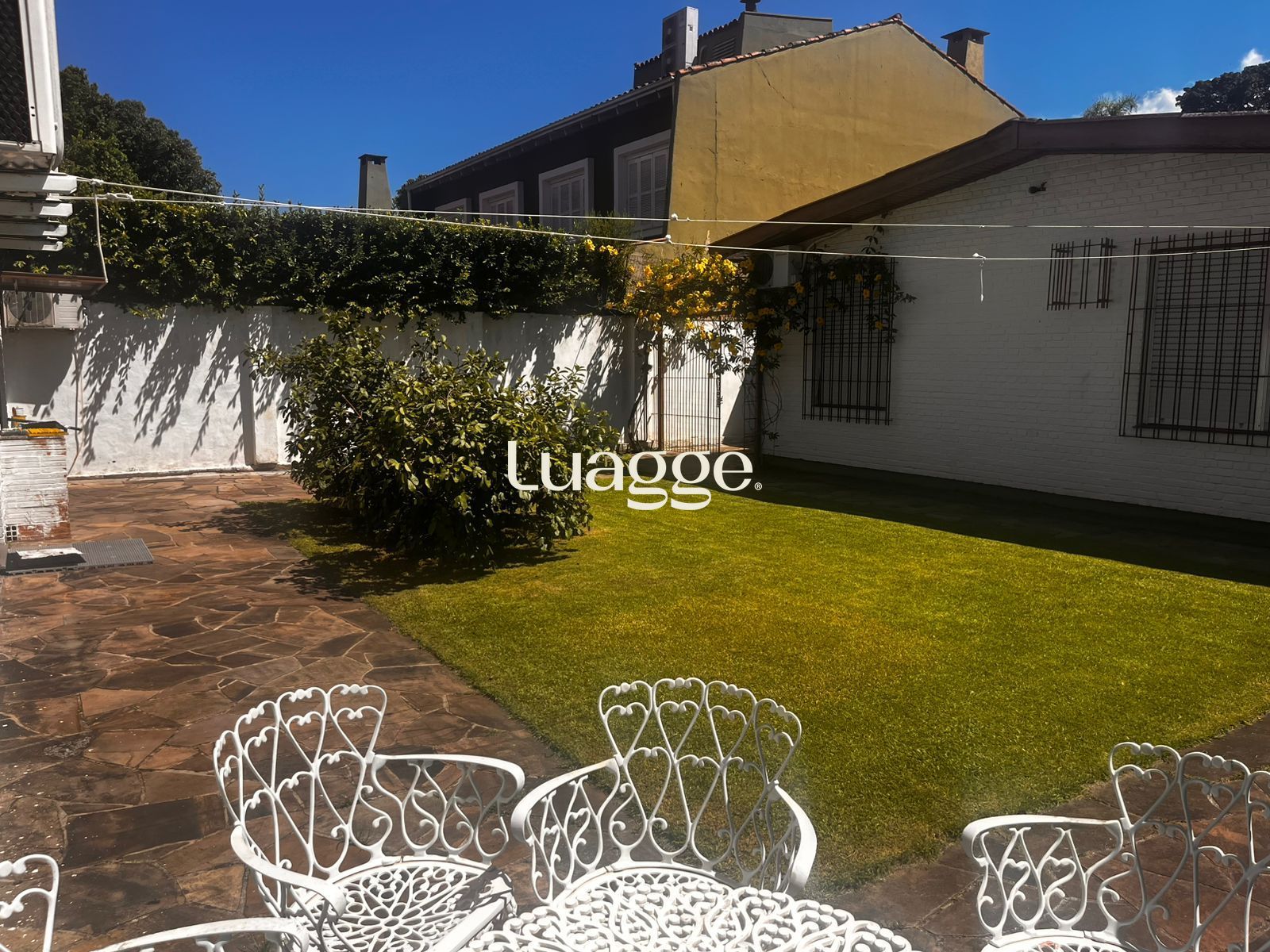 Nos fundos, o pátio arborizado oferece uma área social independente, ideal para lazer e convivência, composta por espaço com churrasqueira, 1 dormitório com ar-condicionado e banheiro completo.
