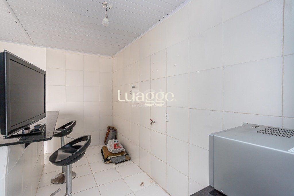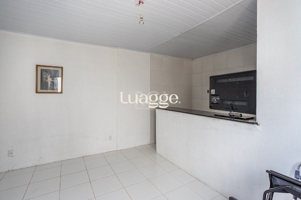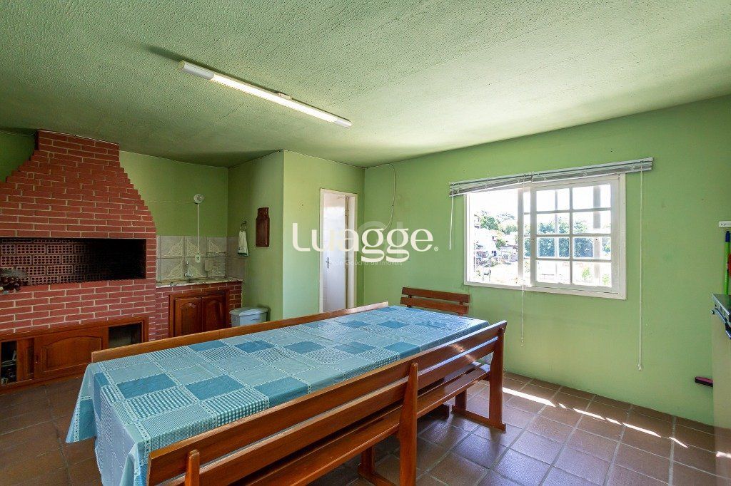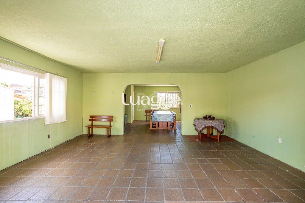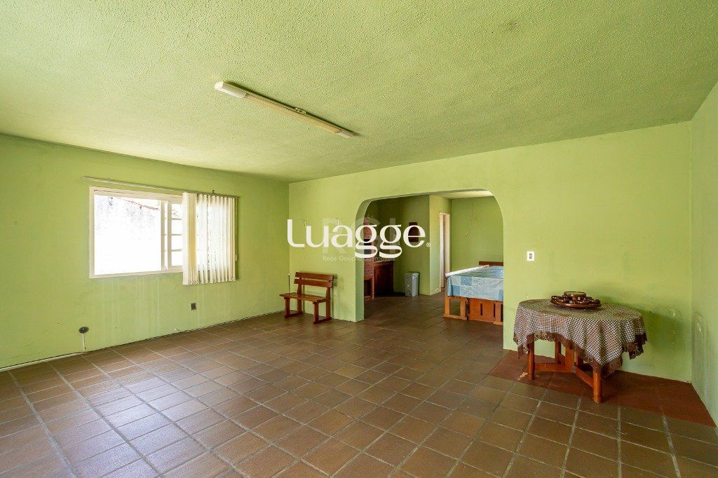 No pavimento superior: salão com 50 m² com churrasqueira e cozinha, lavabo e terraço. Porão de 26 m² com lavanderia e depósito.