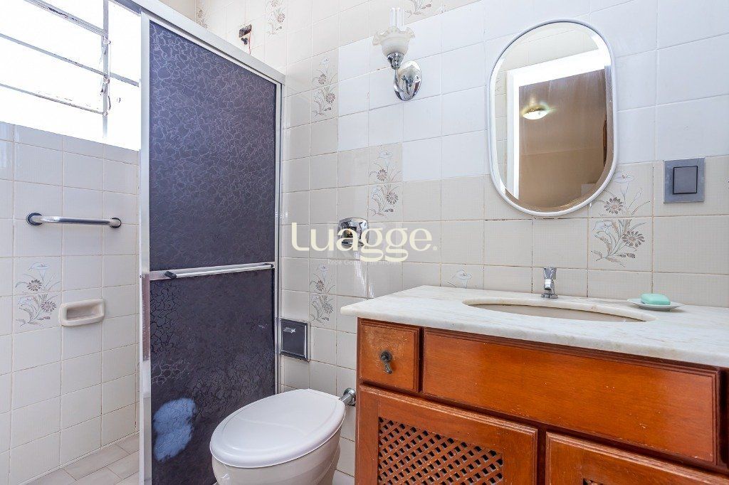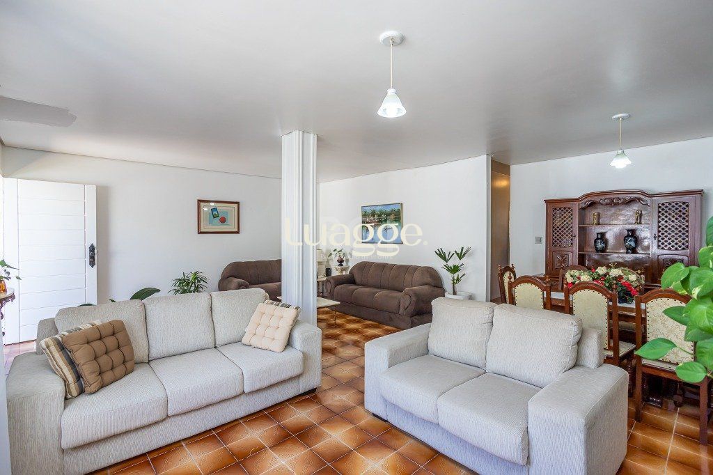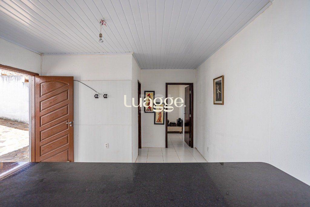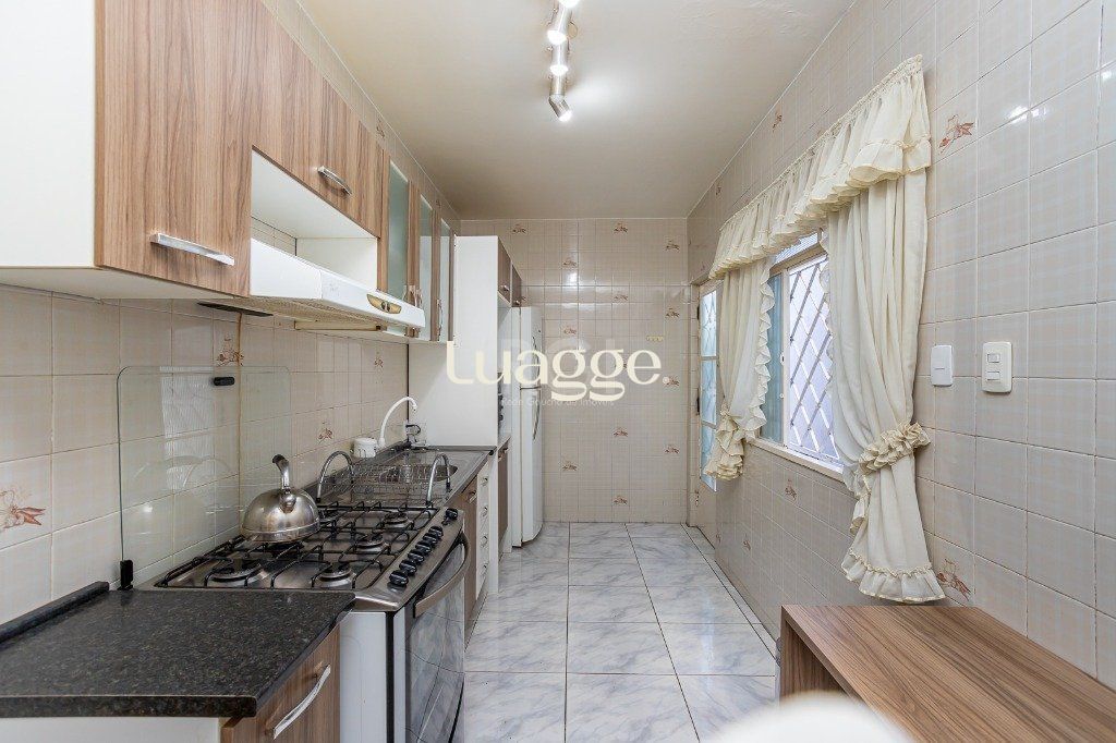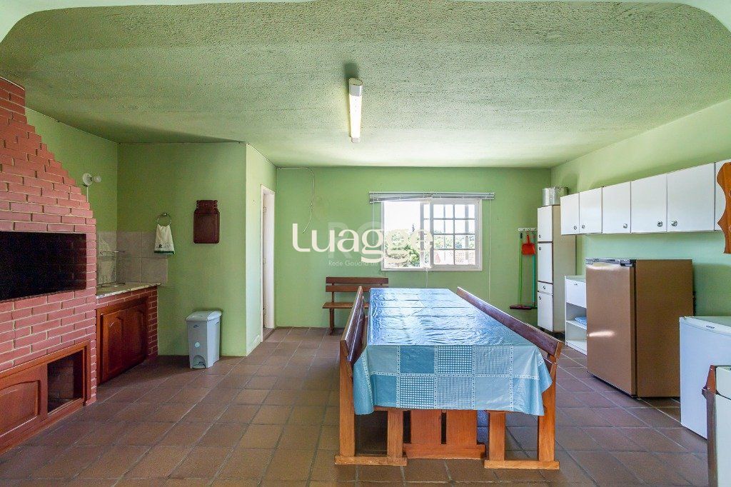 No pavimento superior: salão com 50 m² com churrasqueira e cozinha, lavabo e terraço. Porão de 26 m² com lavanderia e depósito.