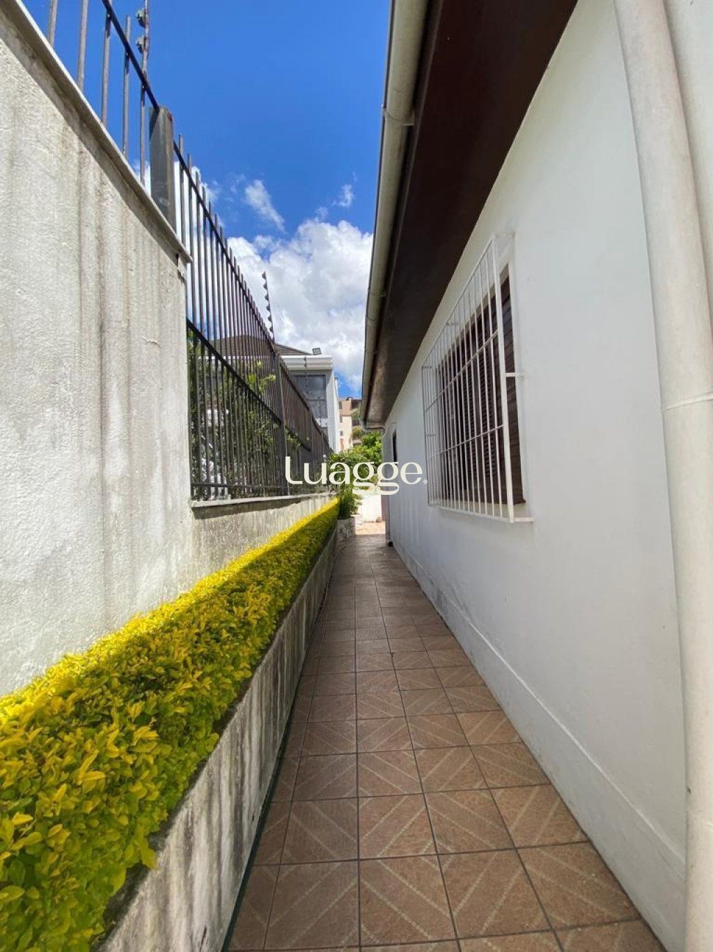 Com pátio frente com entrada de garagem para 3 carros. Com entrada na lateral, com pátio fundos com árvores frutíferas.
