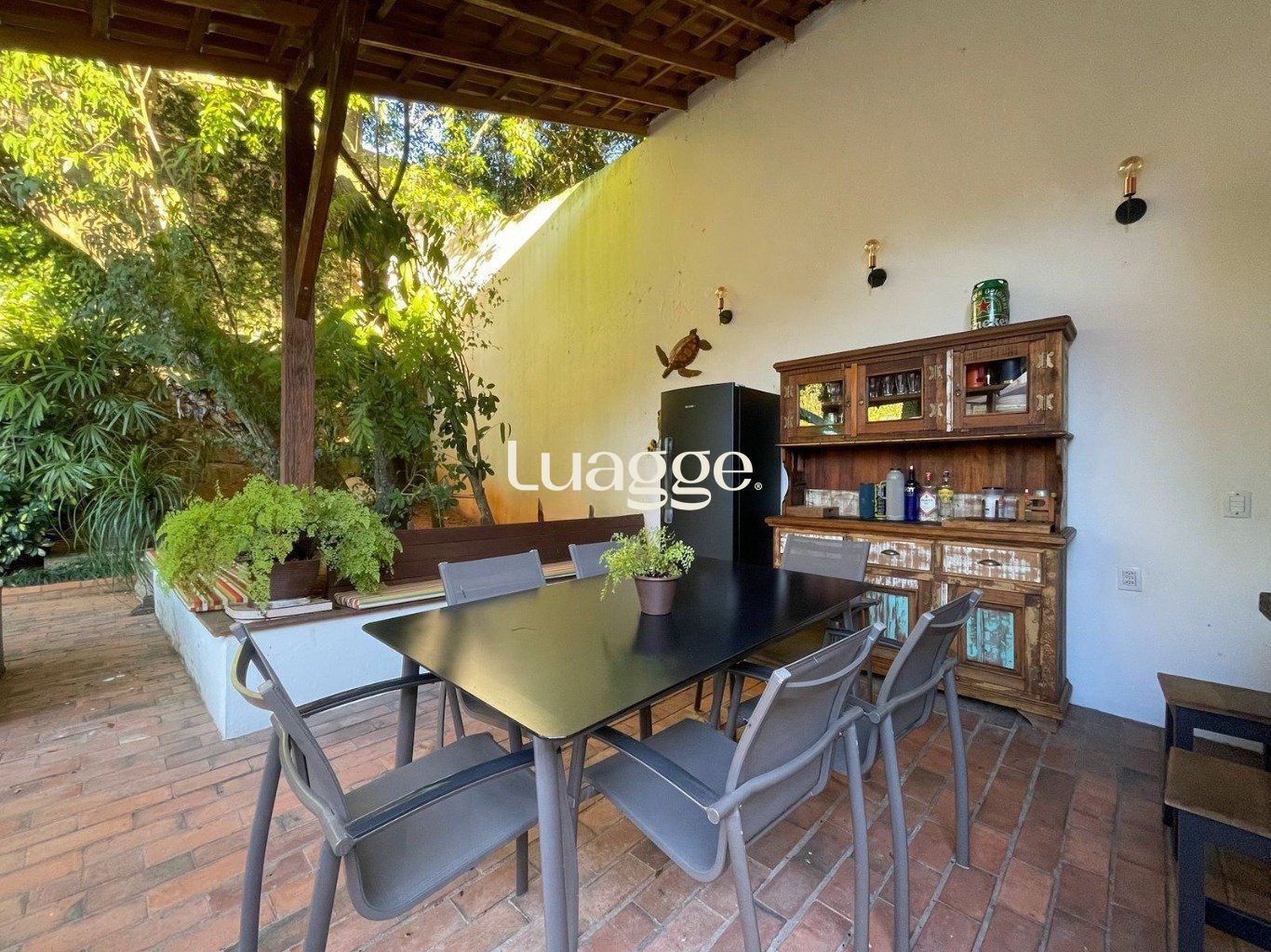 No Pavimento térreo garagem coberta para 4 carros, pátio com projeto de paisagismo exuberante, piscina aquecida, churrasqueira externa e banheiro de apoio. Área de serviço completa com dependência de empregada.