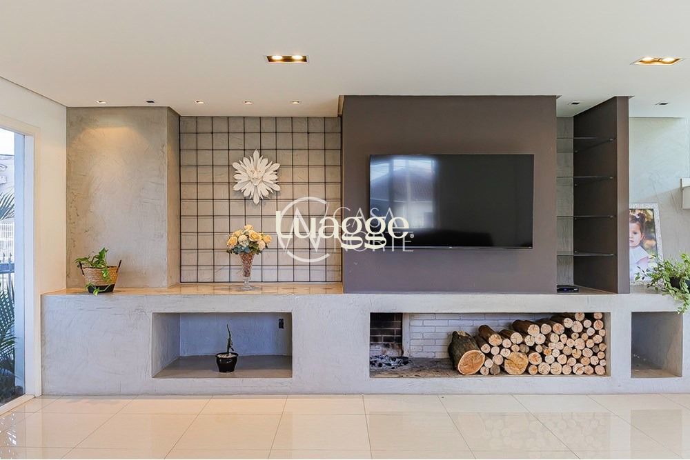 A sala de estar possui lareira tradicional, trazendo conforto e aconchego ao ambiente.