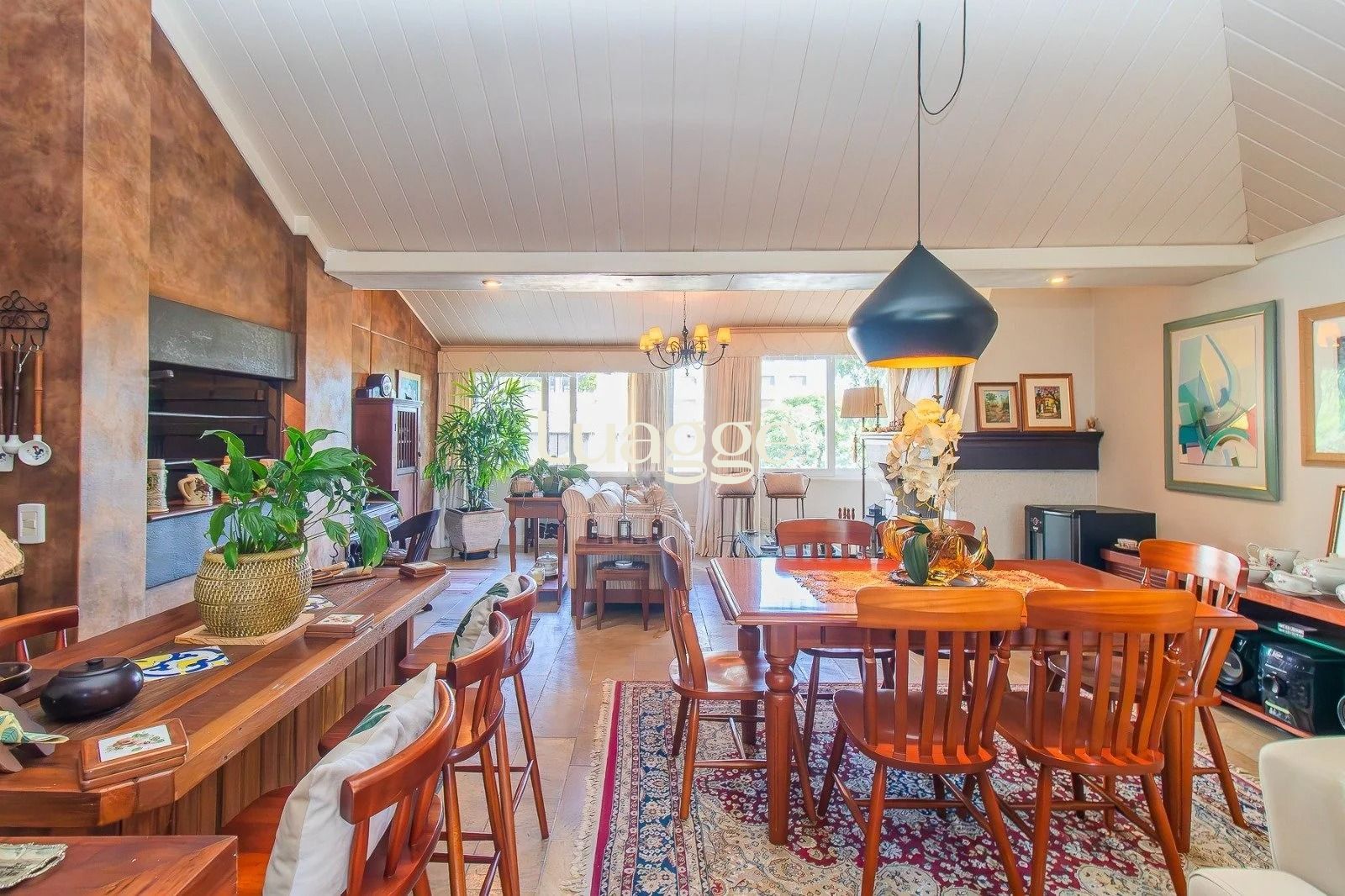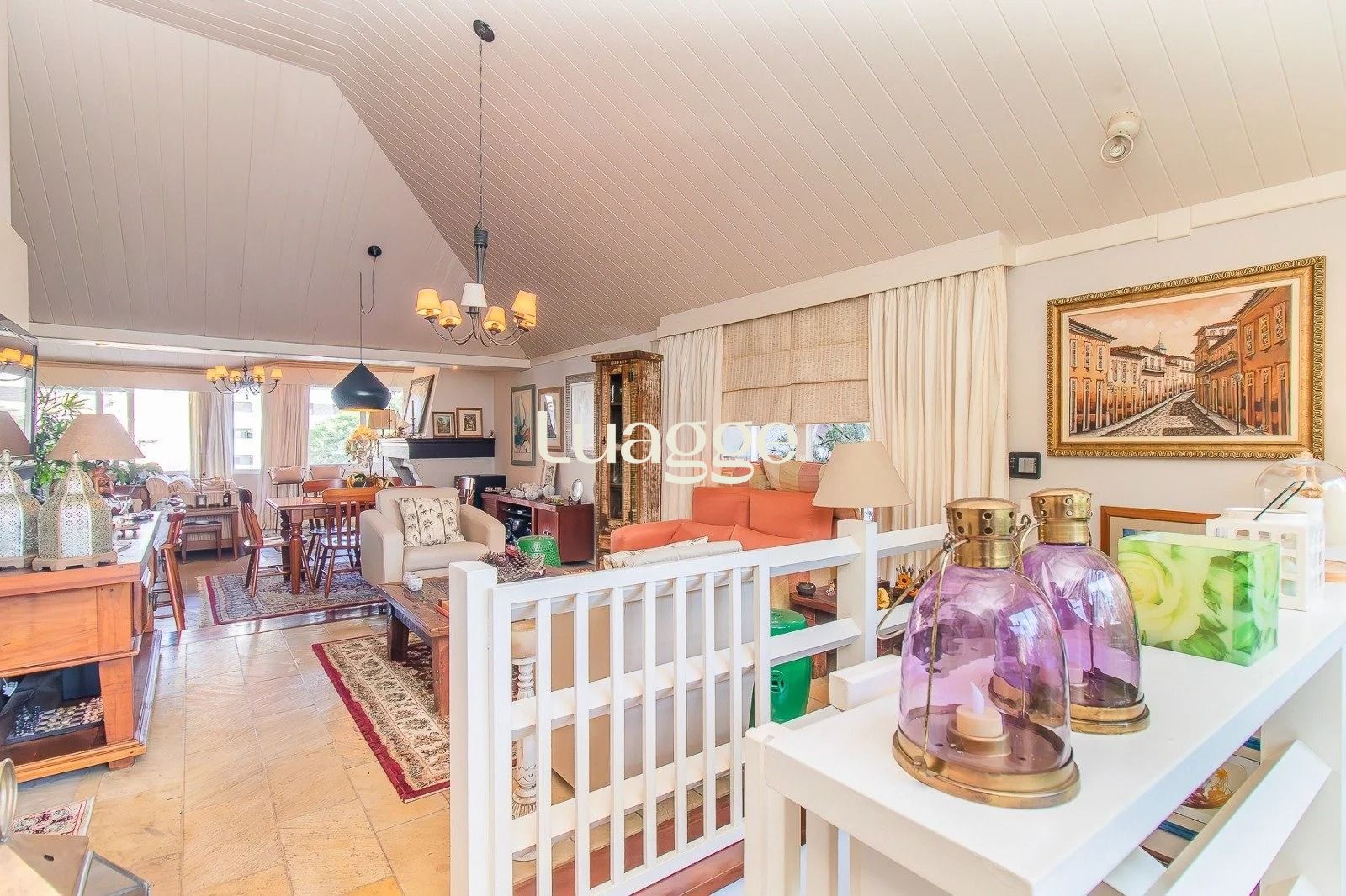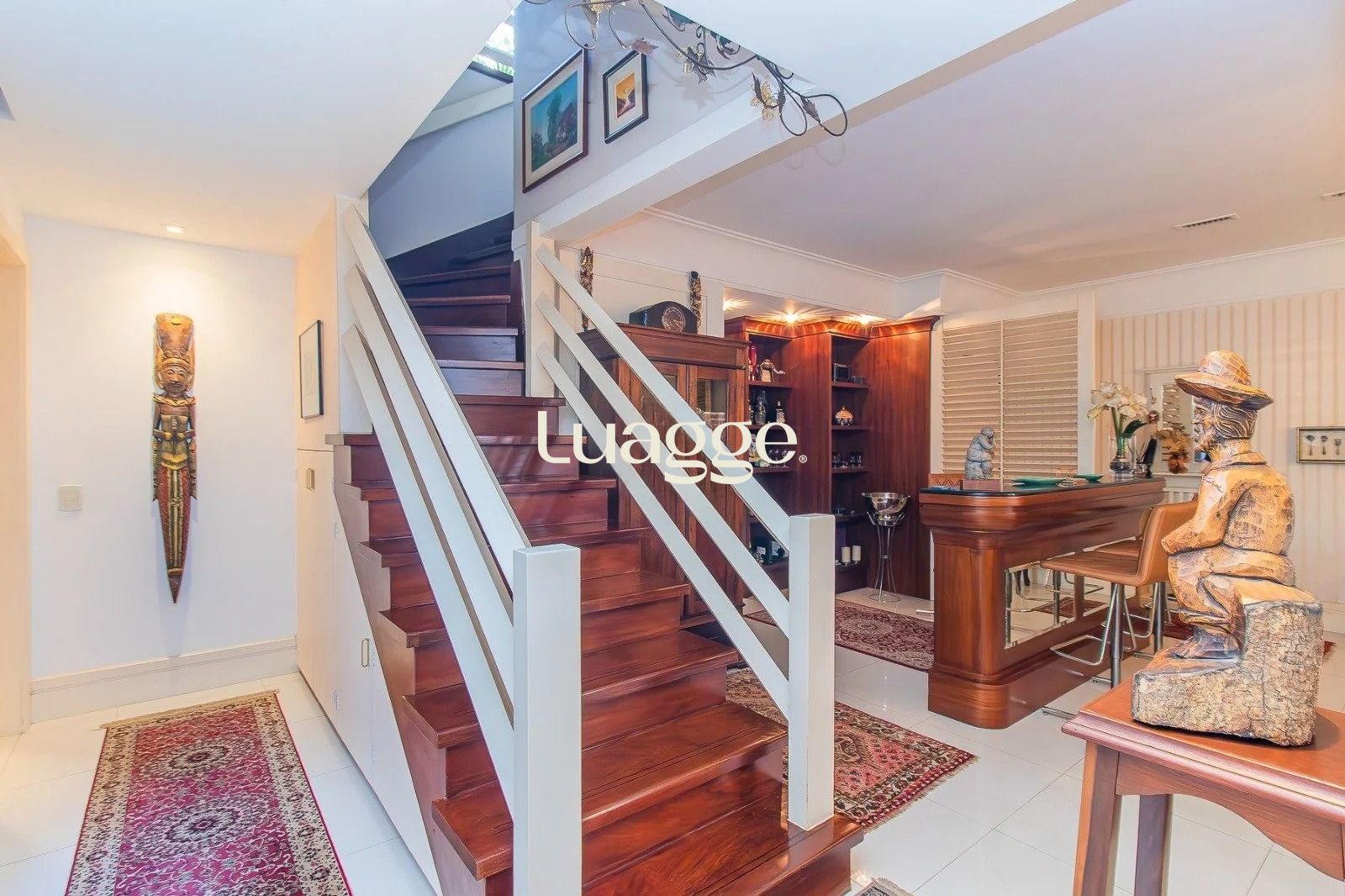 No andar inferior: 4 dormitórios, sendo 1 suíte master com closet. Banheiro social, sala de estar e jantar integradas, com janelas amplas que garantem excelente iluminação natural e ventilação cruzada. Cozinha funcional, com área de serviço separada e banheiro adicional. Adega para armazenar seus vinhos com elegância. 3 vagas de garagem cobertas, oferecendo praticidade e segurança.