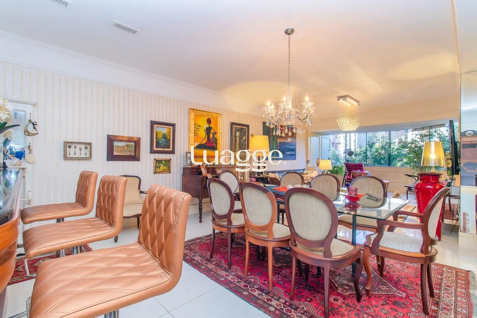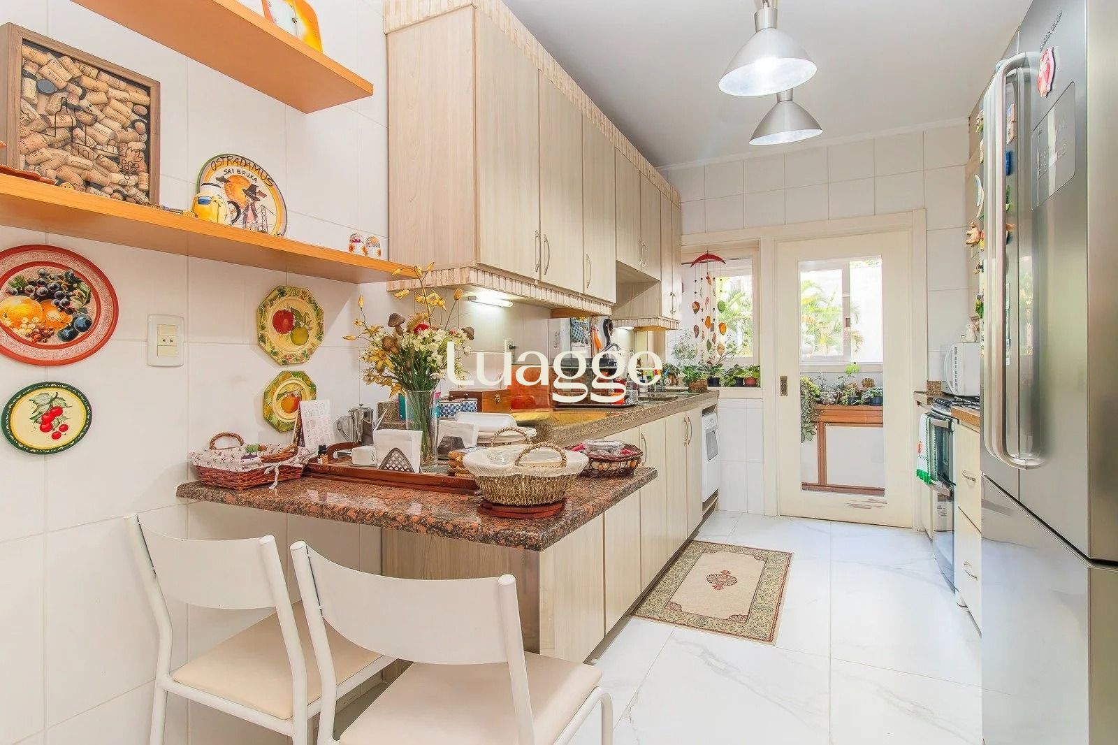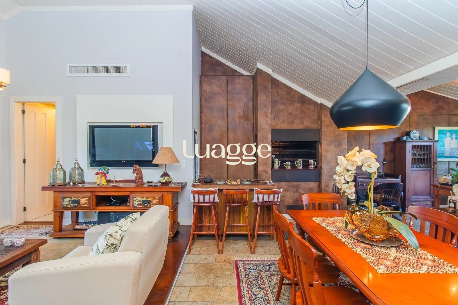 No andar inferior: 4 dormitórios, sendo 1 suíte master com closet. Banheiro social, sala de estar e jantar integradas, com janelas amplas que garantem excelente iluminação natural e ventilação cruzada. Cozinha funcional, com área de serviço separada e banheiro adicional. Adega para armazenar seus vinhos com elegância. 3 vagas de garagem cobertas, oferecendo praticidade e segurança.