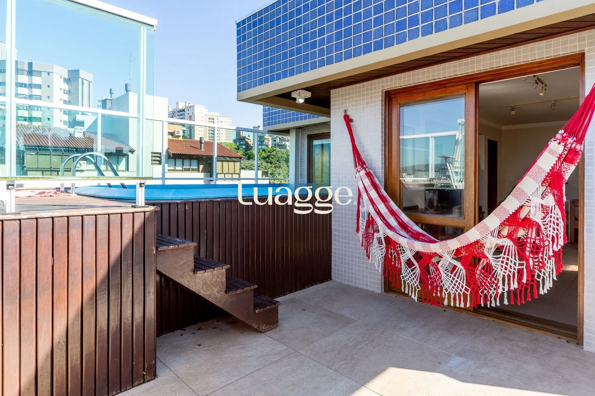 No segundo pavimento: sala ampla com lareira, churrasqueira, banheiro, sacada fechada com teto em vidro, onde tem um home office (escritório) envidraçado/ ensolarado montado, área externa, deck com piscina aquecida ampla 4,2x 2,2m.