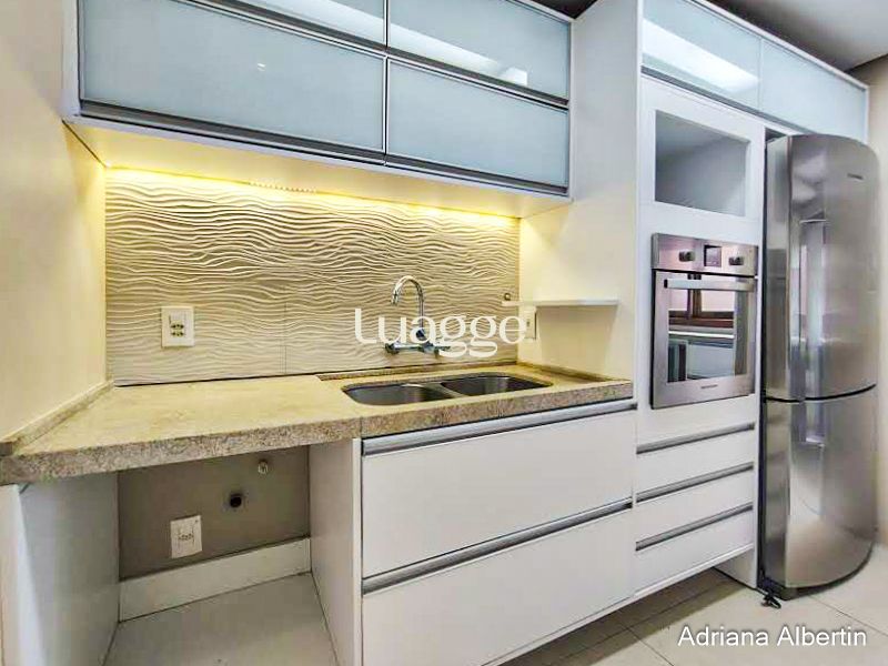Linda cobertura totalmente reformada com living 3 ambientes e rebaixamento em gesso, cozinha finamente mobiliada com ilha com cooktop e coifa, formo elétrico e geladeira, área de serviço separada.
