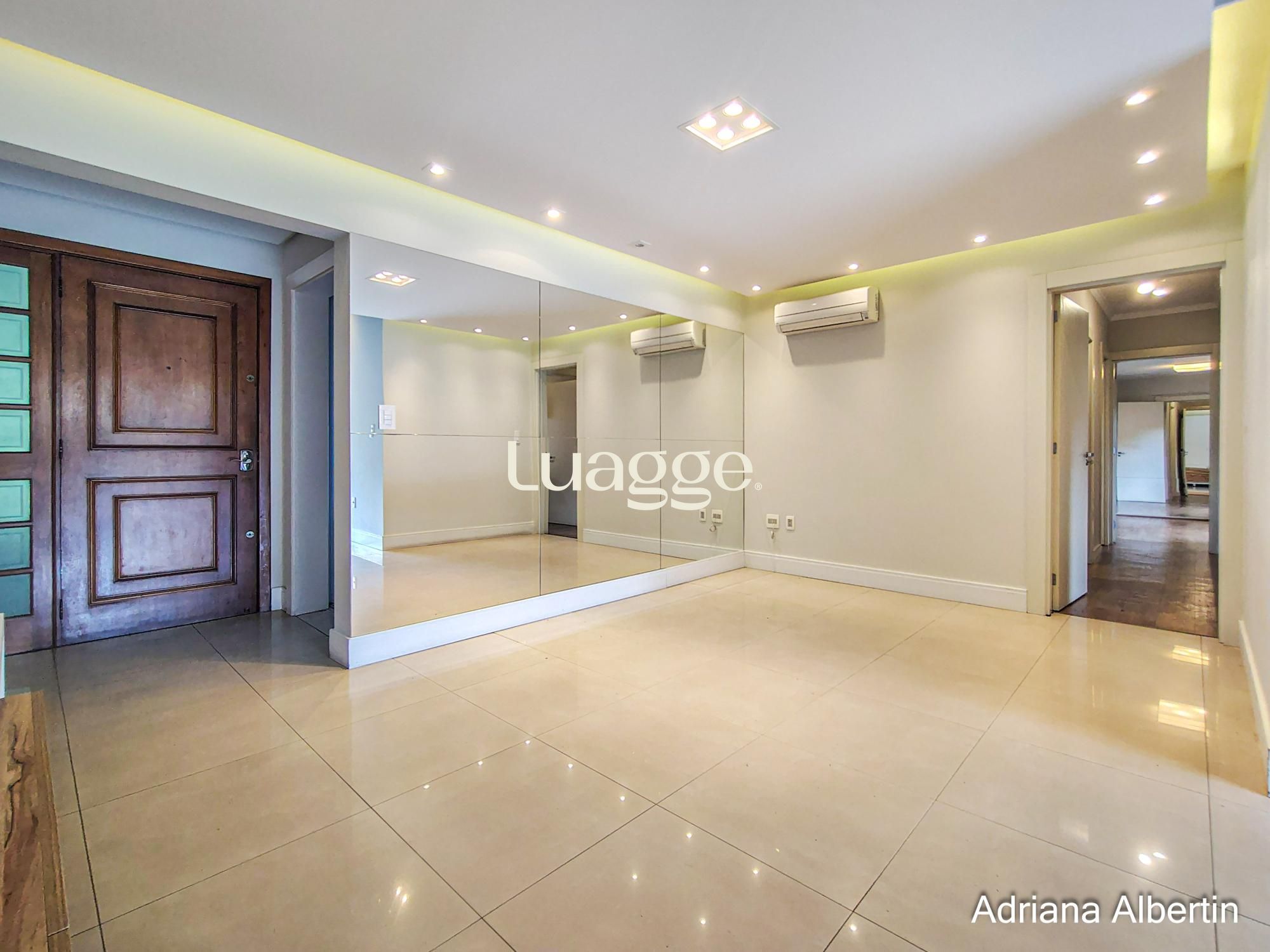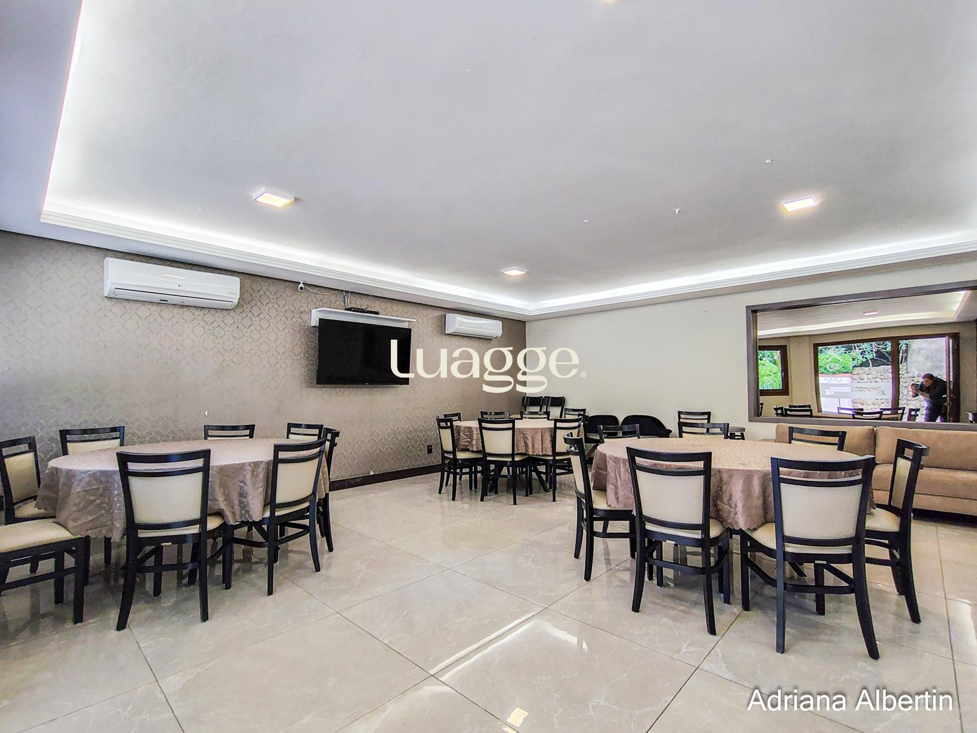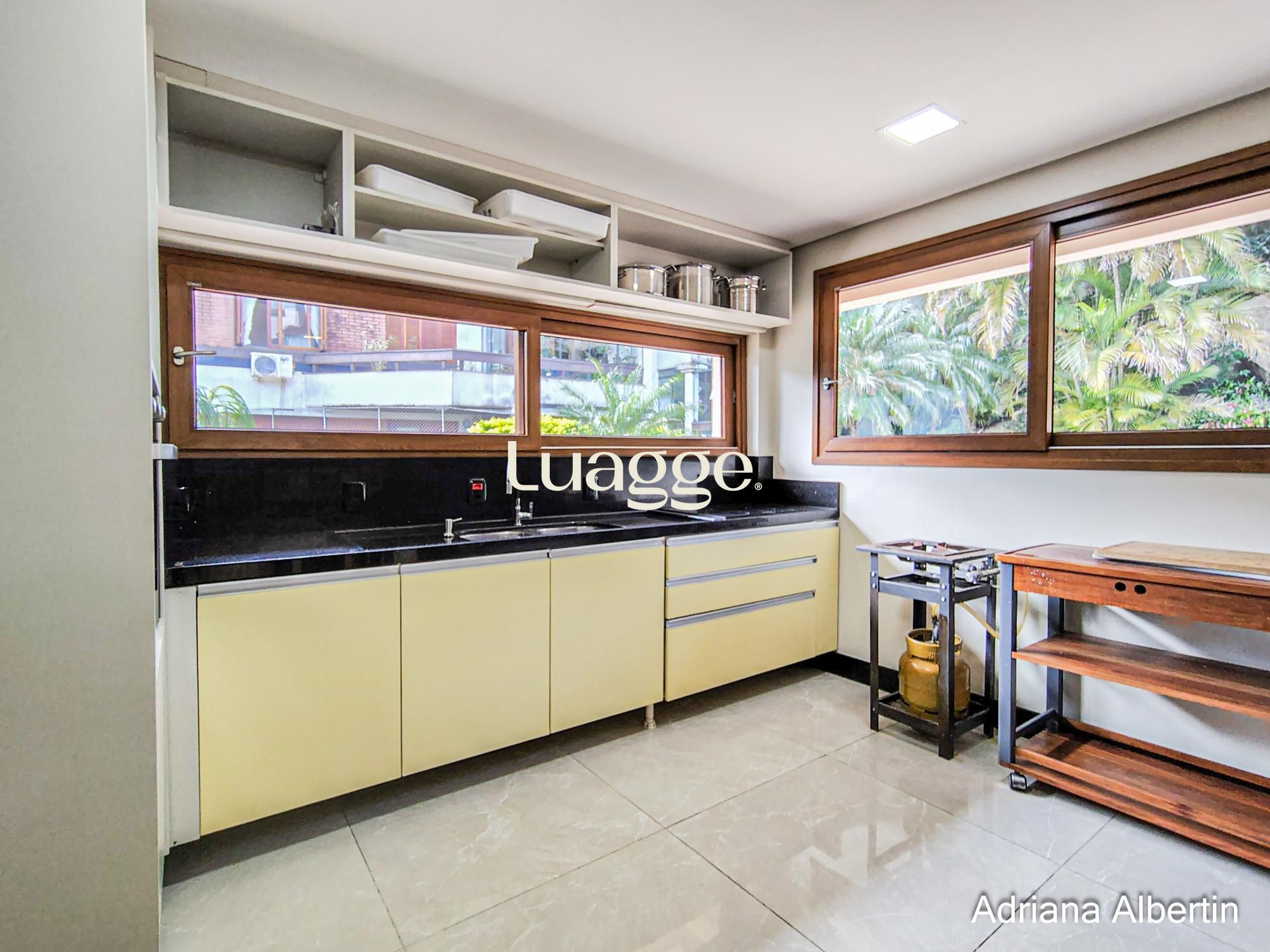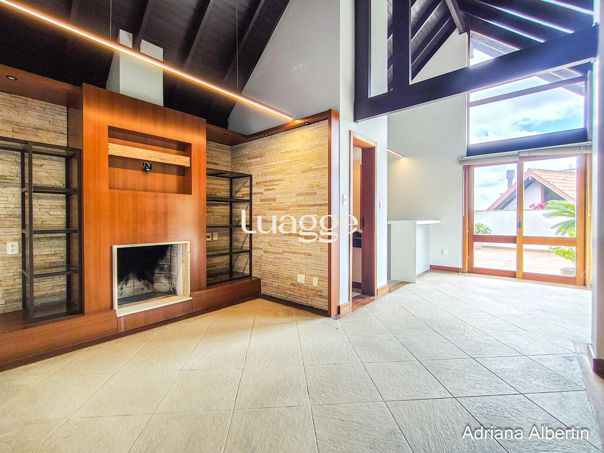 Na cobertura amplo espaço com lareira e churrasqueira integradas, terraço externo aberto e com vista para o Rio Guaíba.