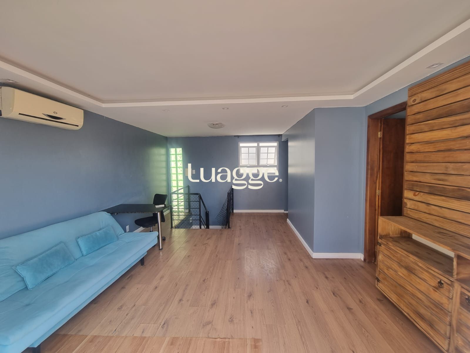 No andar superior possui uma sala de estar com split, terraço com churrasqueira, dormitório e banheiro social.