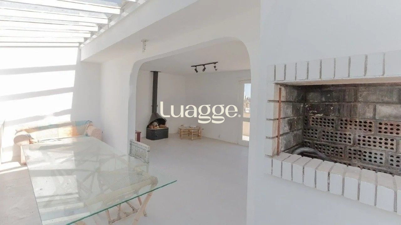 Na parte superior, conta com um living com lareira, espaço gourmet com churrasqueira, área envidraçada integrada ao ambiente e um terraço descoberto de bom tamanho.