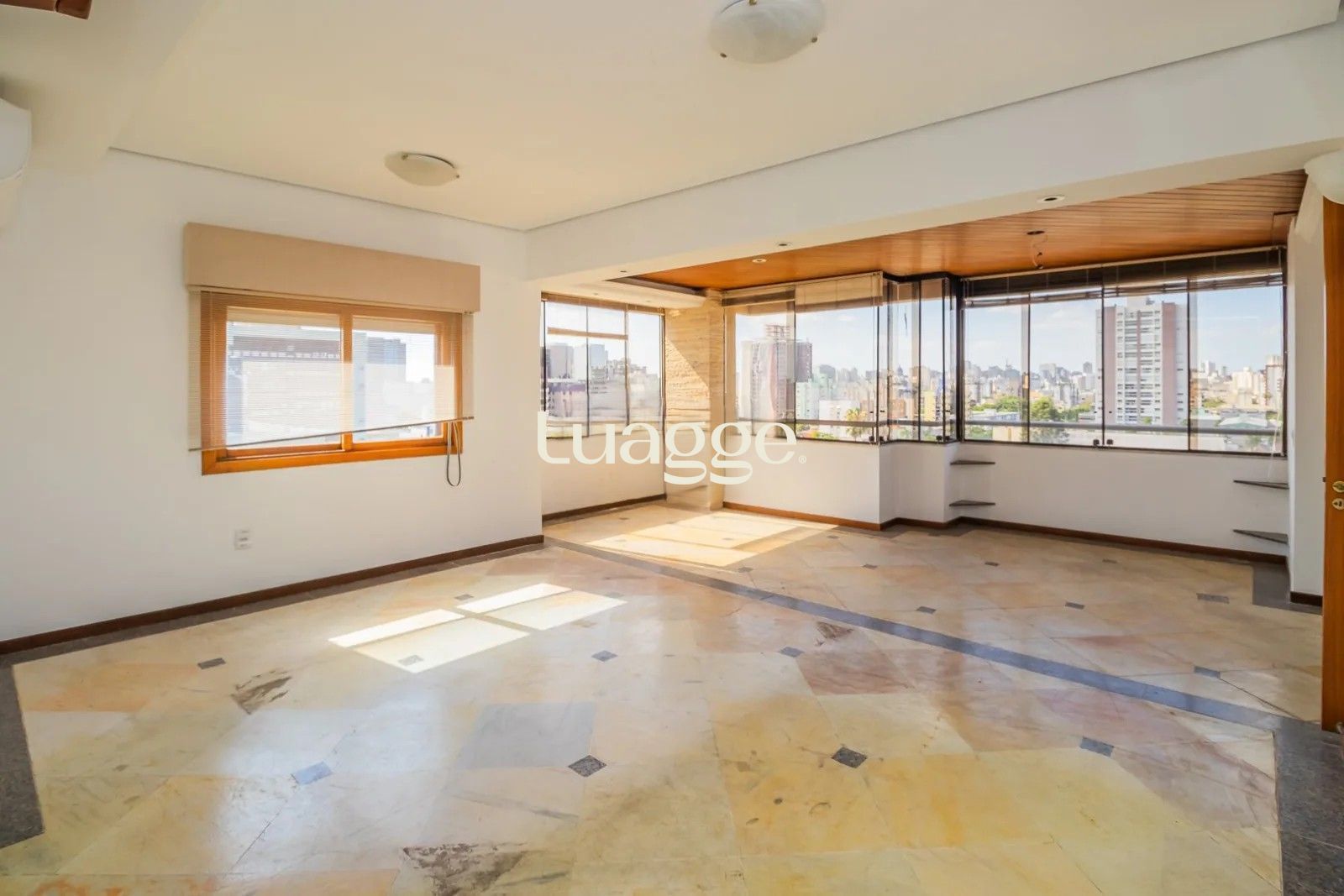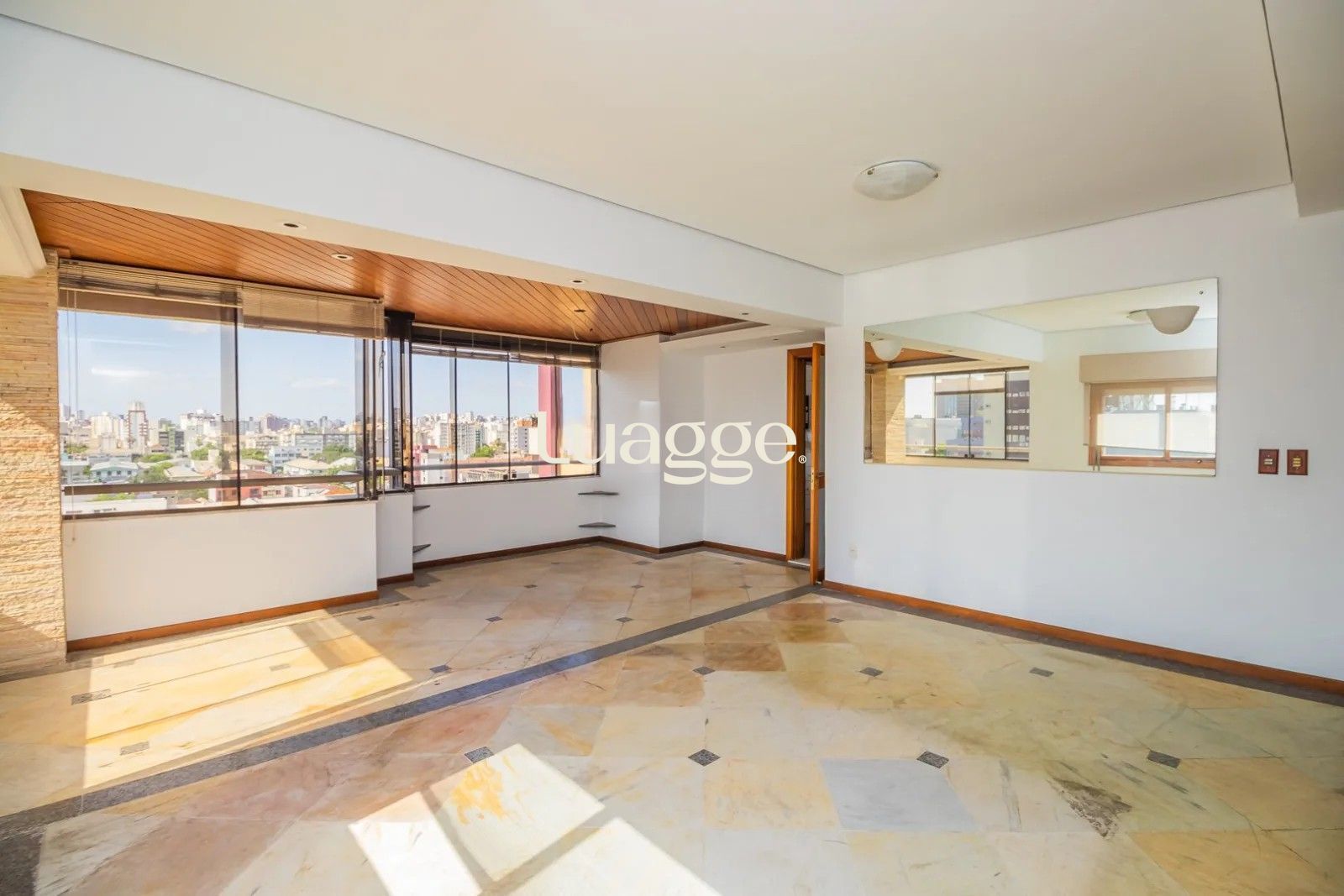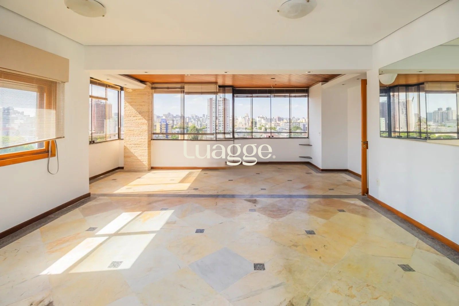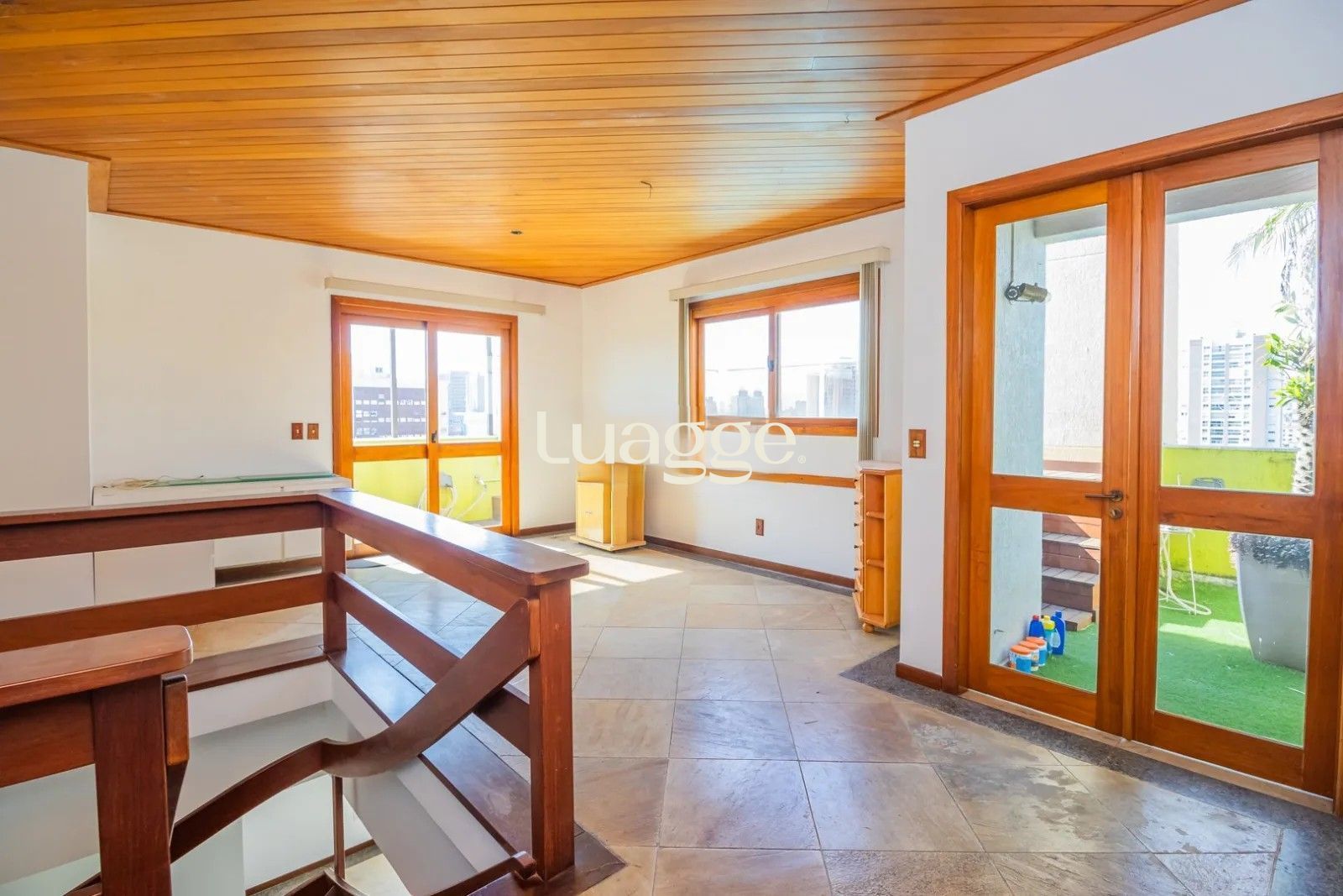 Na parte externa um excelente terraço com deck e piscina privativa, oferecendo uma vista panorâmica e perene do pôr do sol sobre o Guaíba.