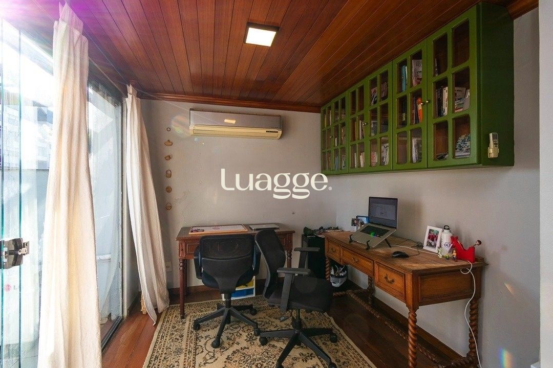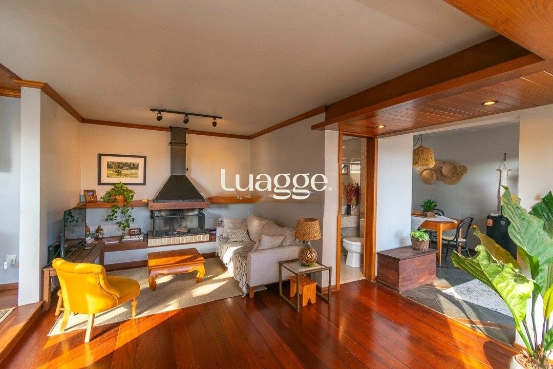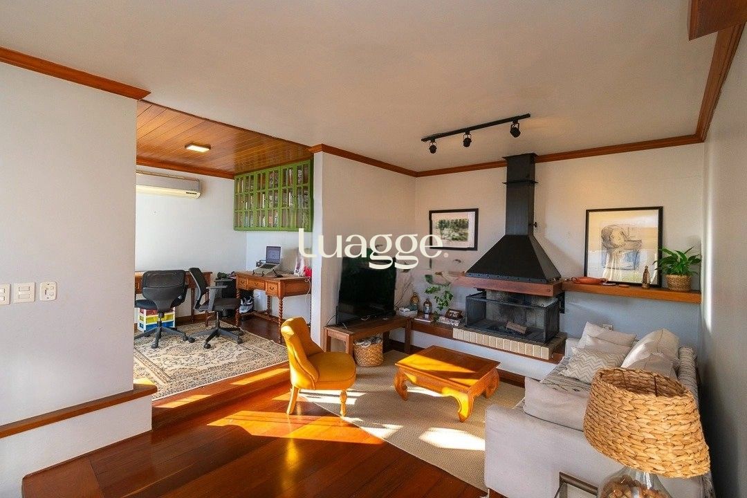 No piso superior há uma espaçosa sala íntima com lareira, cozinha com churrasqueira, gabinete, banheiro social e um terraço com vista definida, perfeito para receber pessoas ou para momentos de lazer.