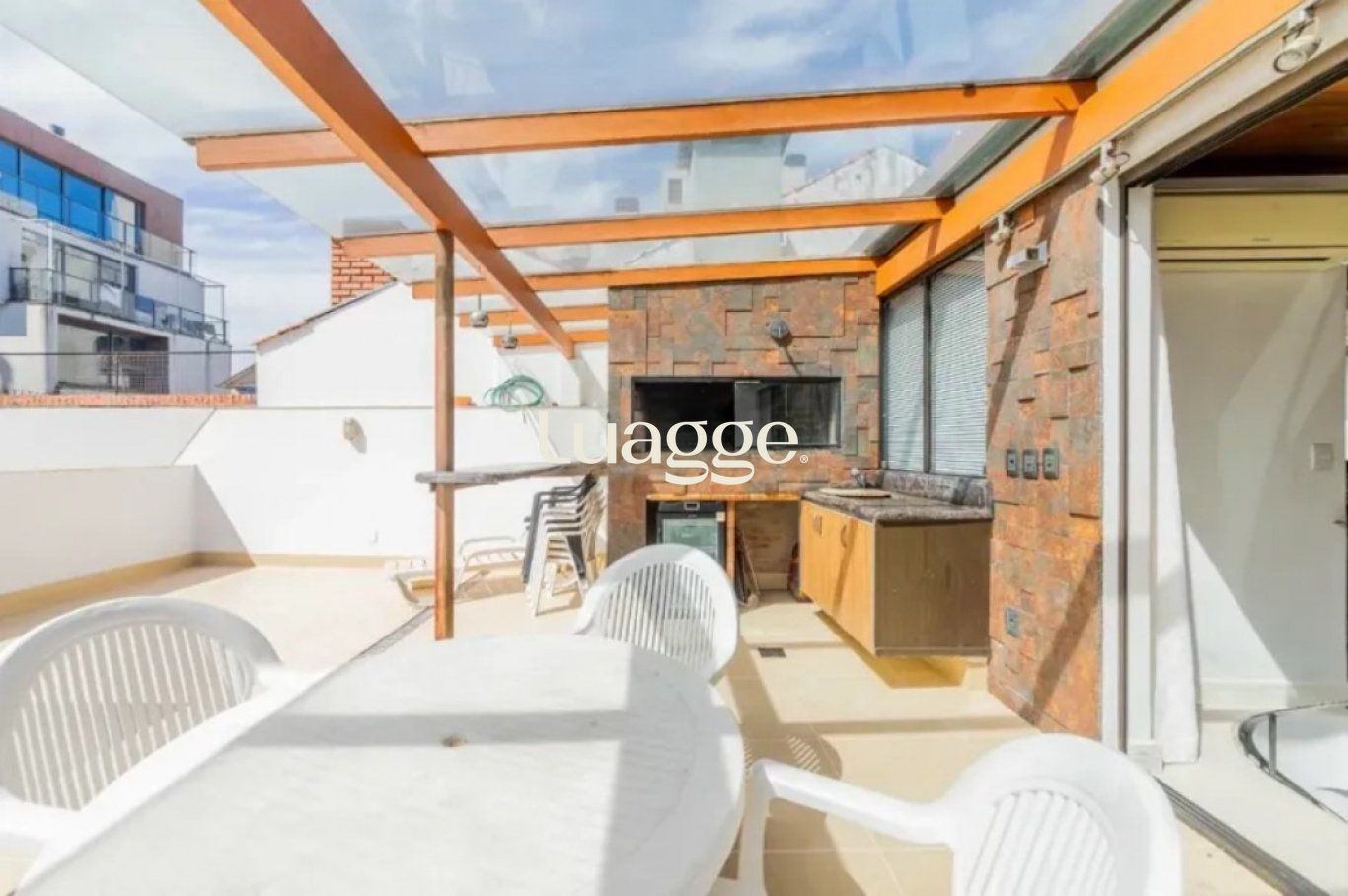 Cobertura com 129m², no primeiro pavimento, ficam os 2 dormitórios, e um amplo living com 2 ambientes, janelas grandes, bem iluminado e ventilado. Cozinha com área de serviço integrada. No segundo pavimento sala de estar, amplo espaço home-office. Terraço amplo, ensolarado e privativo. Com espaço gourmet com parrilla.