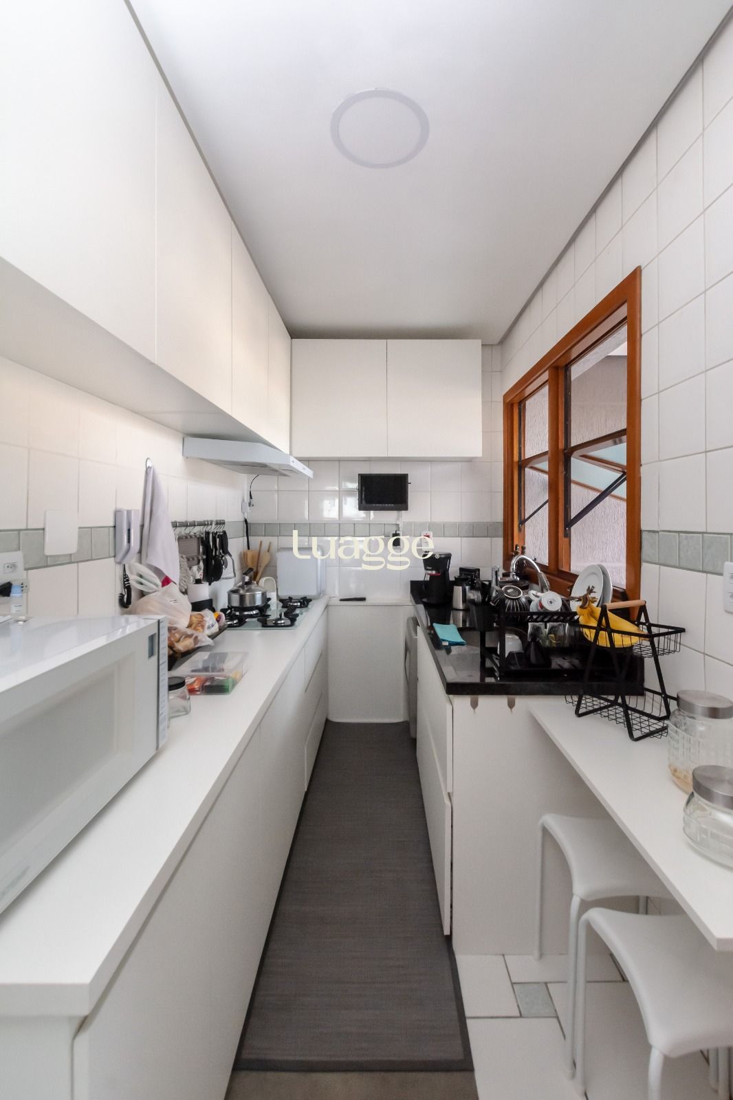 Todos os móveis sob medida de excelente qualidade permanecem no imóvel, incluindo móveis planejados nos dormitórios, cozinha, área de serviço e espaço gourmet. Existe também a possibilidade de instalar um terceiro dormitório na parte superior.