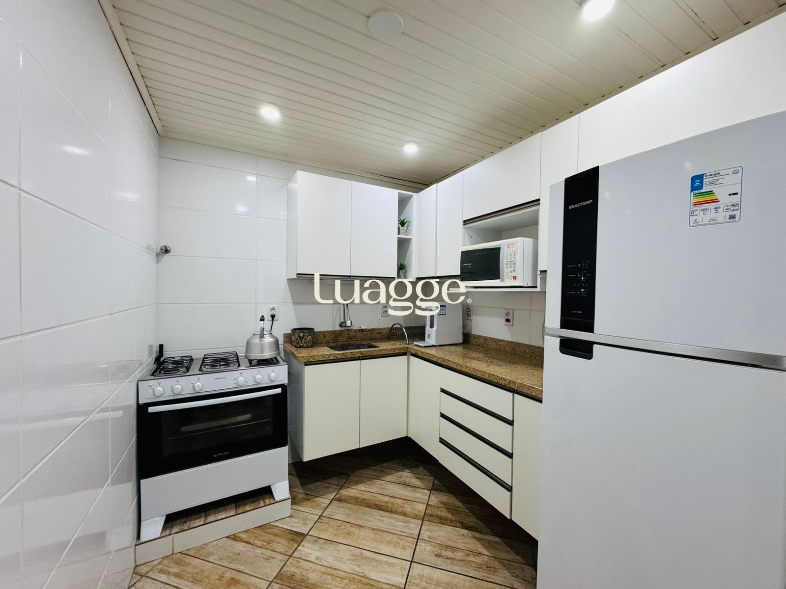 No pavimento inferior, o imóvel conta com 2 dormitórios, sendo 1 suíte, living para dois ambientes, cozinha funcional, área de serviço separada e banheiro social. Ambientes bem distribuídos, iluminados e com ventilação natural.