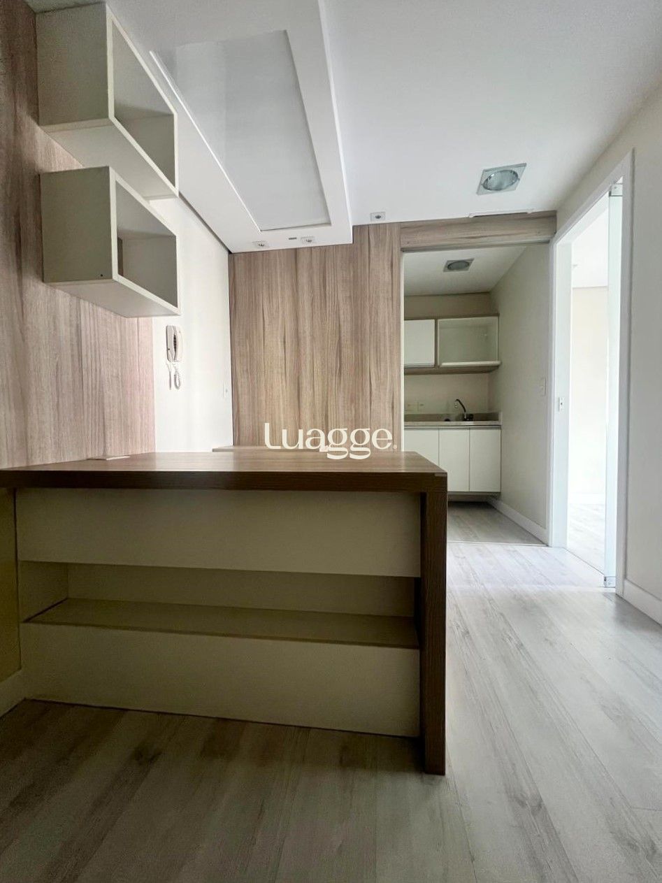 Sala semimobiliada, com móveis planejados - 41,84 m² de área privativa total e 1 vaga coberta.
