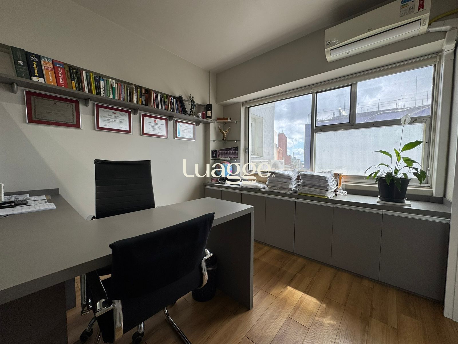 Ótima sala/conjunto comercial com 54 privativos, toda mobiliada, com móveis de qualidade, e também com alguns materiais de escritório , impressora, triturado e outros que contemplam a mobília que fica. Com sala de recepção, e mais três salas separadas, podendo alugar ou acomodar outras empresas e segmentos no mesmo conjunto, com uma mesma recepcionista. Cozinha montada com freezer e outros que fazem parte da mobília. Em andar alto com vista para a cidade. Pronta para receber uma ou mais equipes de trabalho.