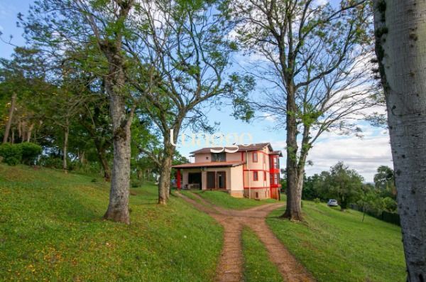Lindo sítio com área de 6.500m² casa de alvenaria com aproximadamente 500m² de área construída com excelente estrutura, 4 dormitórios, sendo 2 dormitórios com sacada, garagem coberta ´para 3 carros, cozinha com móveis sob medida, sala em 2 ambientes, casa auxiliar em madeira com 2 dormitórios, sala, cozinha, banheiro, área de festas com churrasqueira, banheiro e espaço de apoio a piscina com banheiro que serve como vestiário. Varanda, área externa com piso cerâmico, piscina com equipamento novo, motor , bomba, filtro, patio todo gramado, praticamente todo plano com opção para construção de cancha de esportes, ótima localização , sem risco de alagamentos, não aceita financiamento, documentação em dia dos terrenos, casas sem averbação.