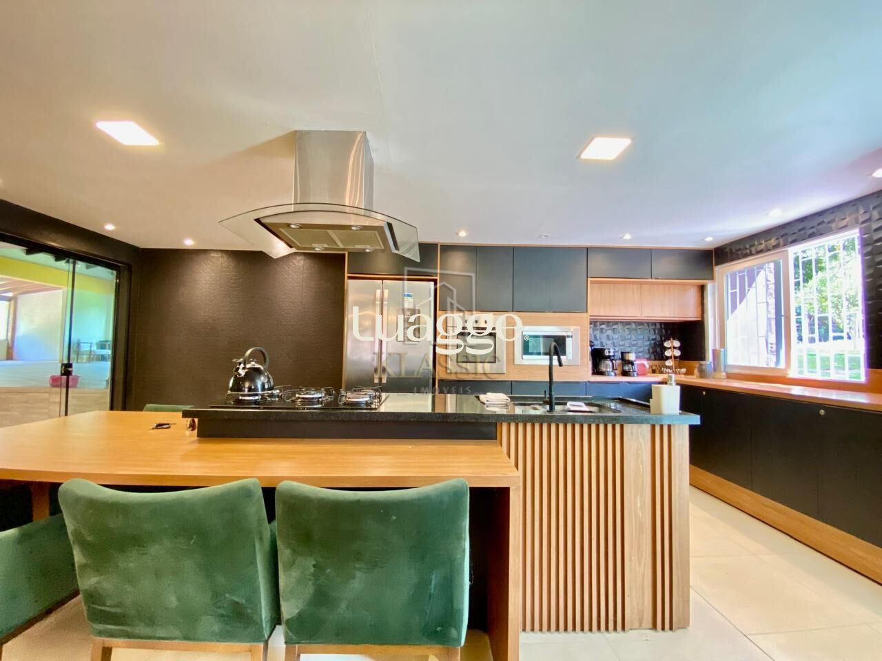 A residência possui 360m² de área construída, com ambientes amplos e planejados para o conforto da família:
