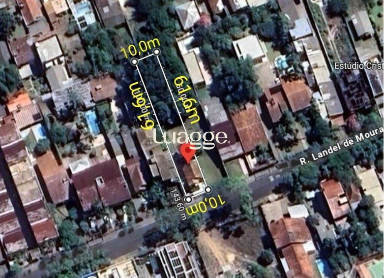 Excelente terreno plano, medindo 10,50 metros de testada por 61,6 metros de comprimento, totalizando 646,8m2. O terreno possui uma casa com 2 dormitórios, um closet, sala, 2 banheiros, salão de festas com churrasqueira, garagem coberta e aberta e um porão.