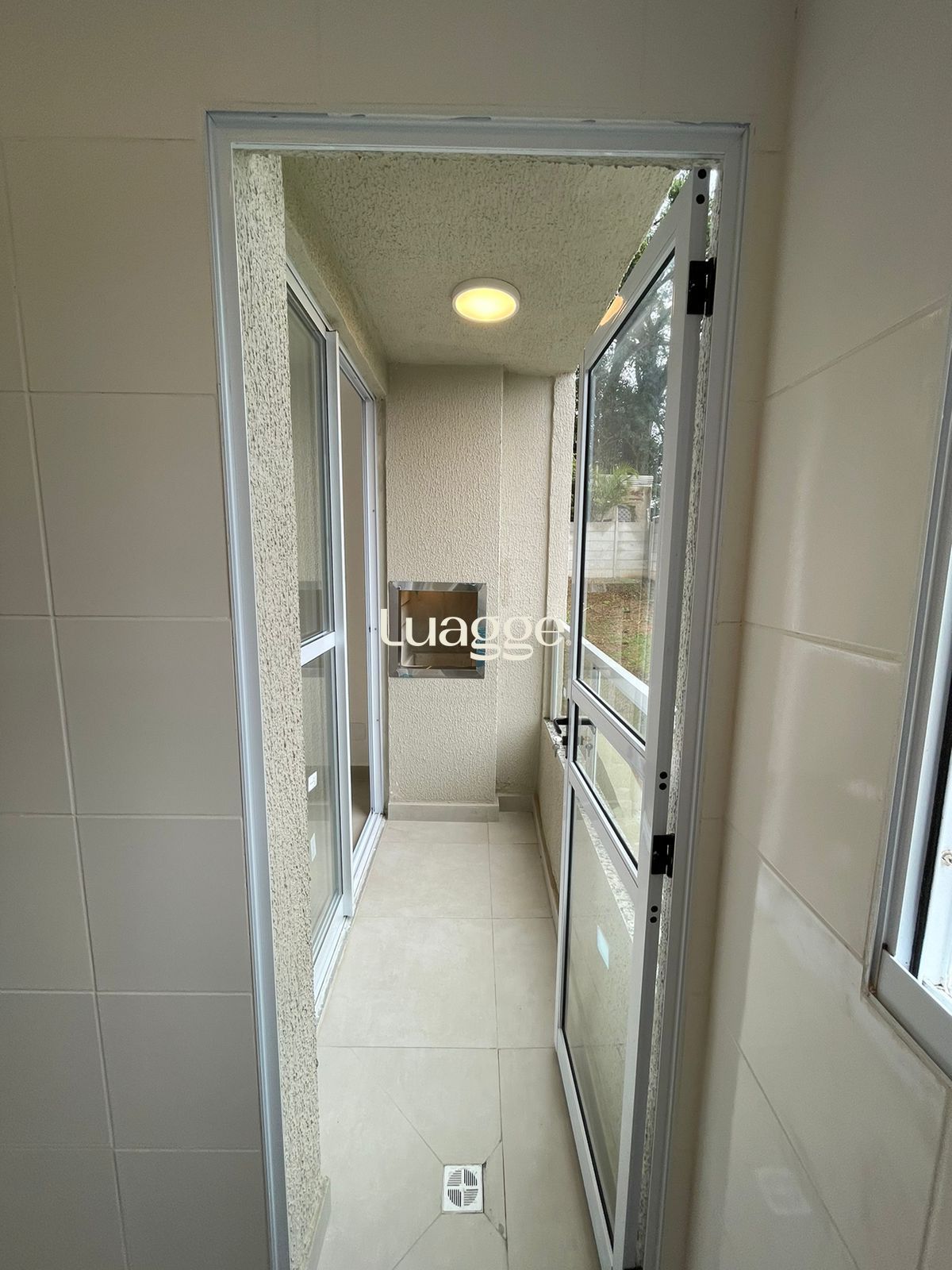 Sala ampla com sacada e churrasqueira