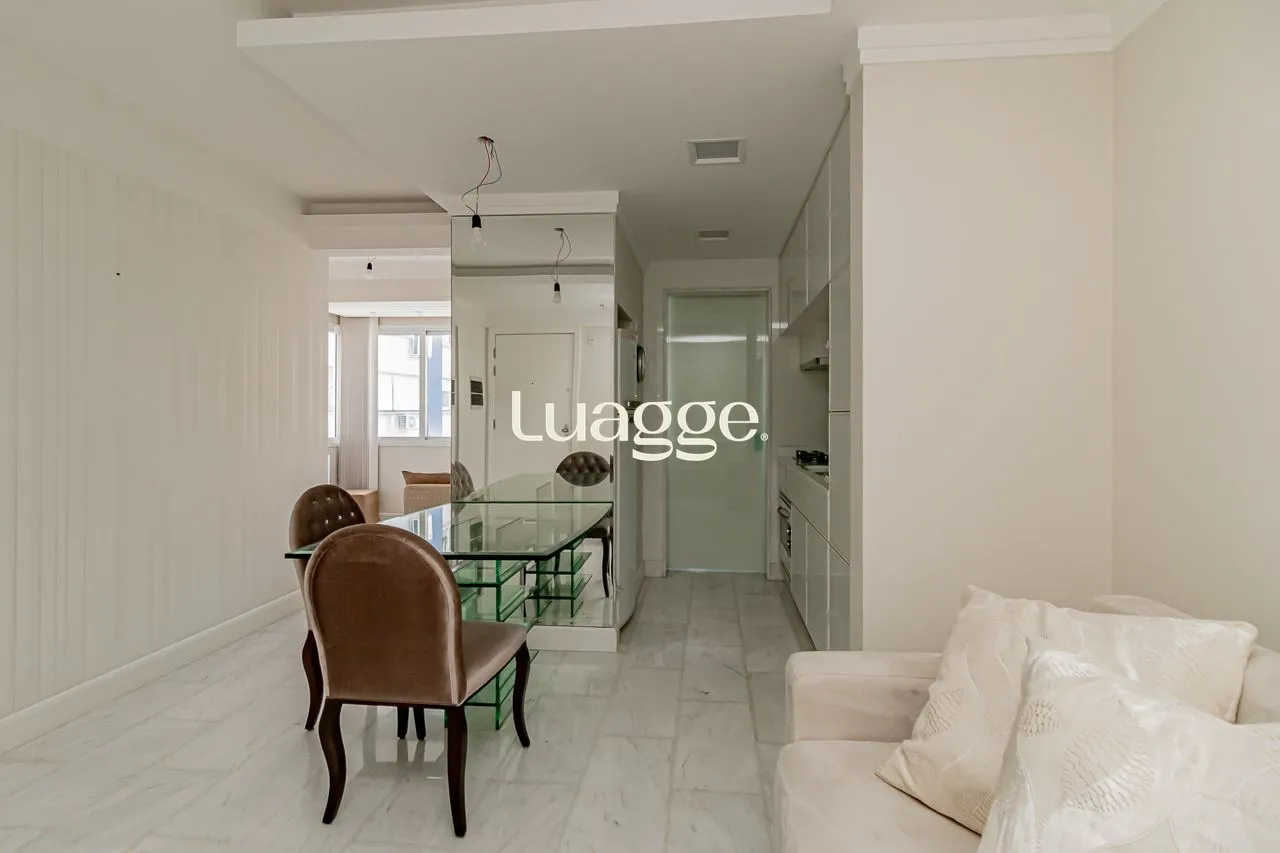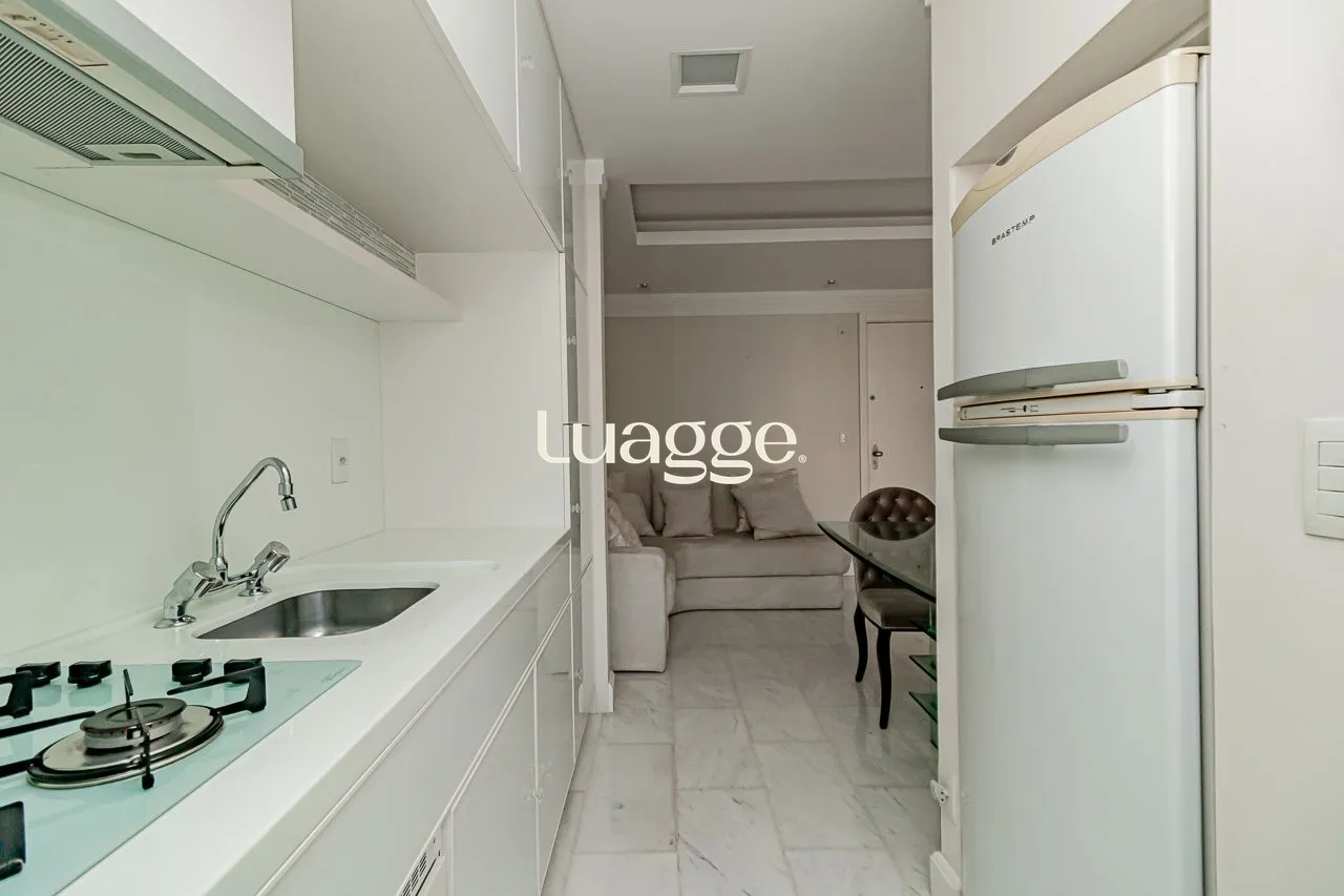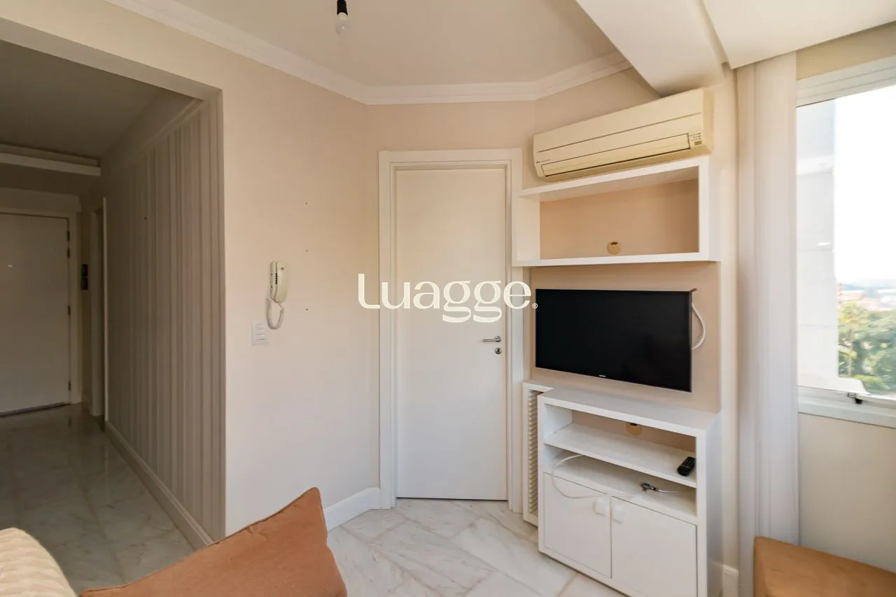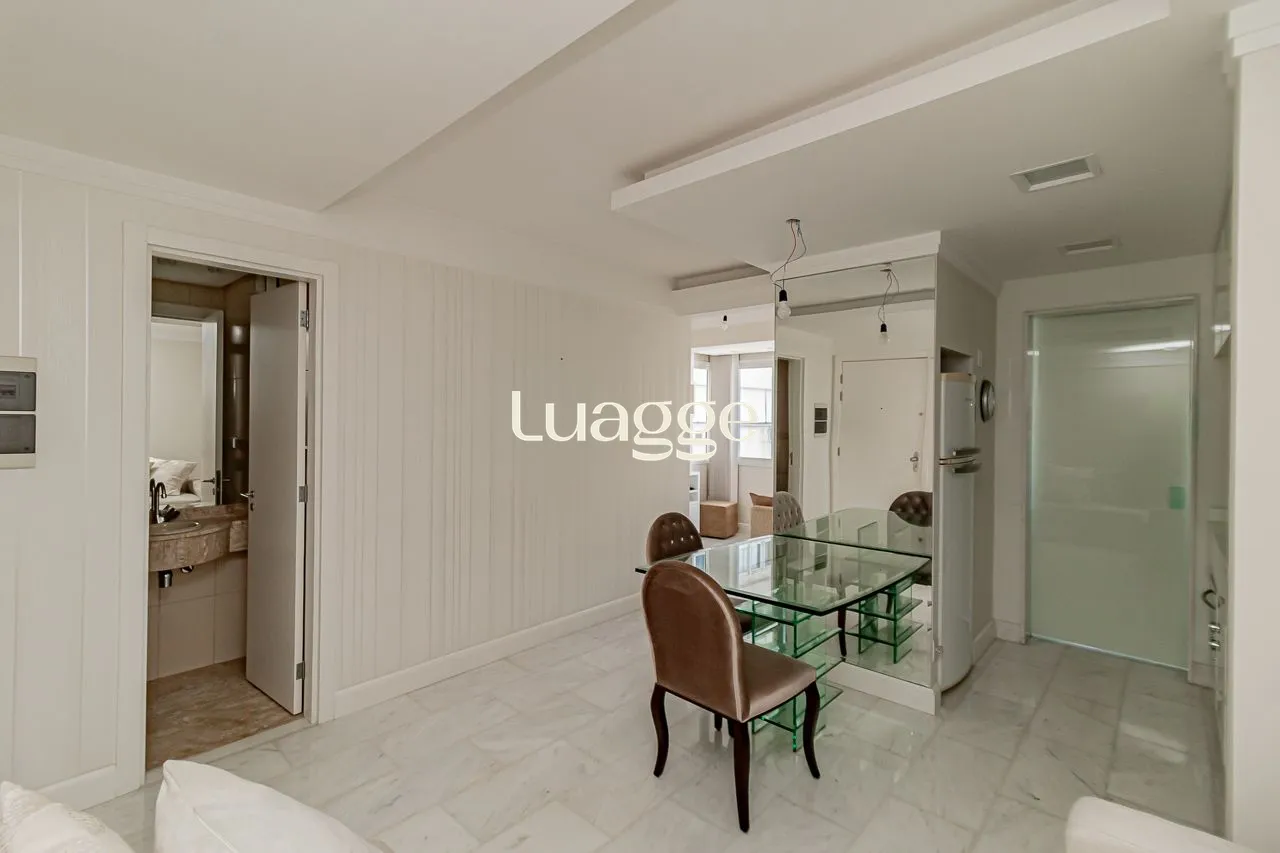 Apartamento de 1 dormitório, sendo suíte, totalmente mobiliado, com lavabo e churrasqueira, com layout prático e funcional para o dia a dia.