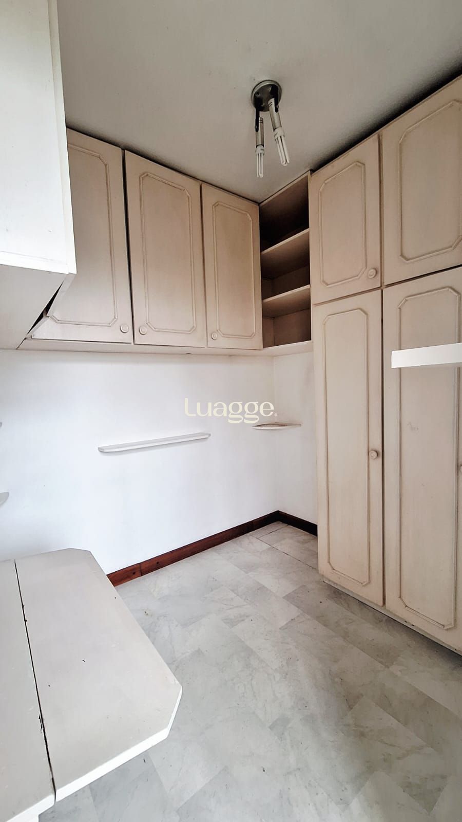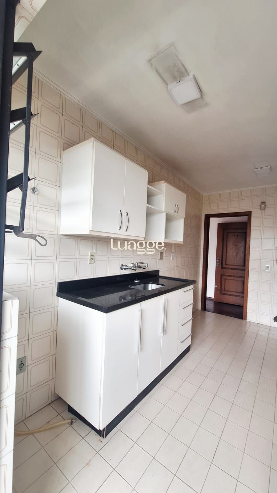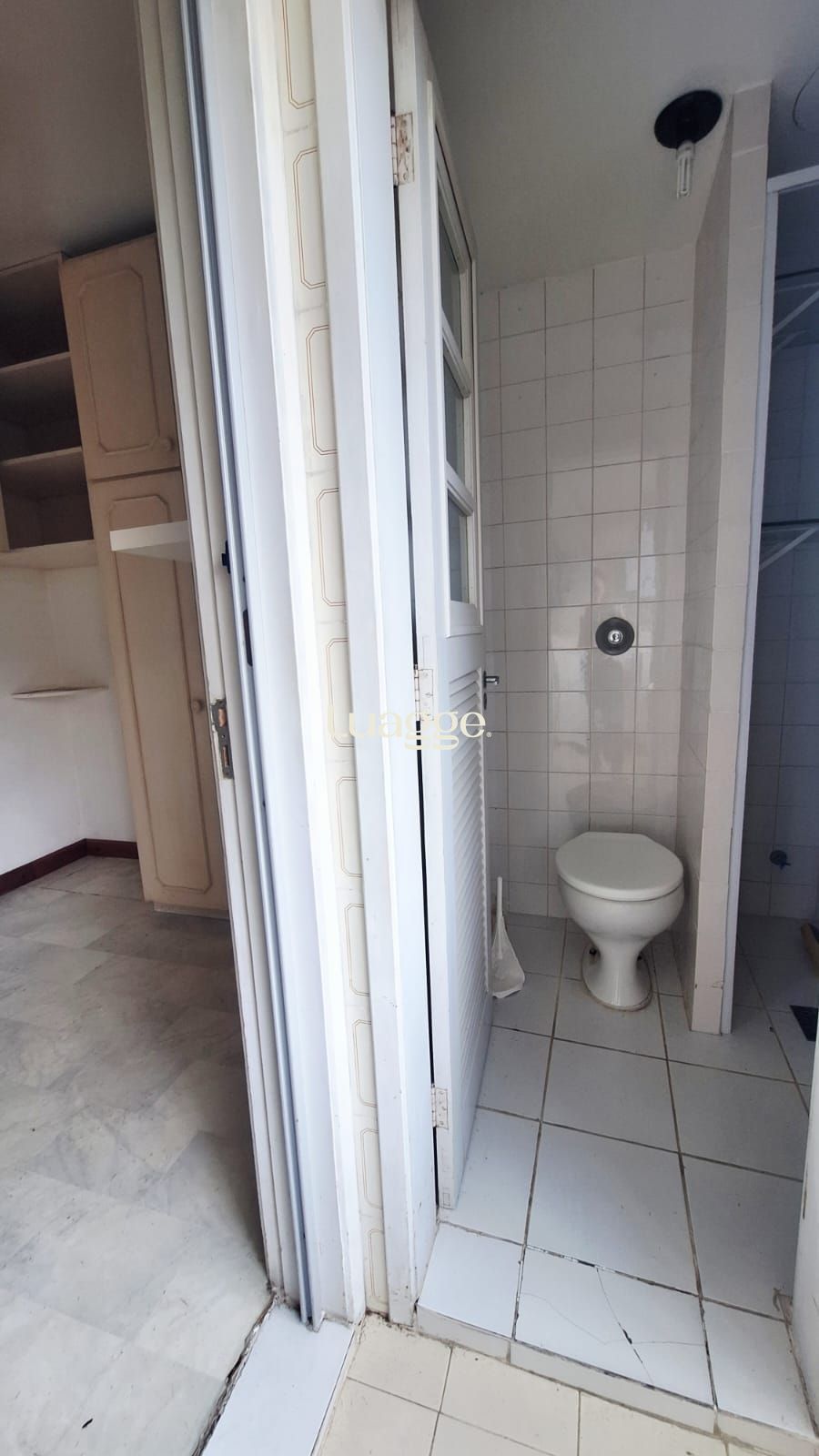 Cozinha bem iluminada, com dependência de empregada e banheiro auxiliar. Armários em um dos quartos.