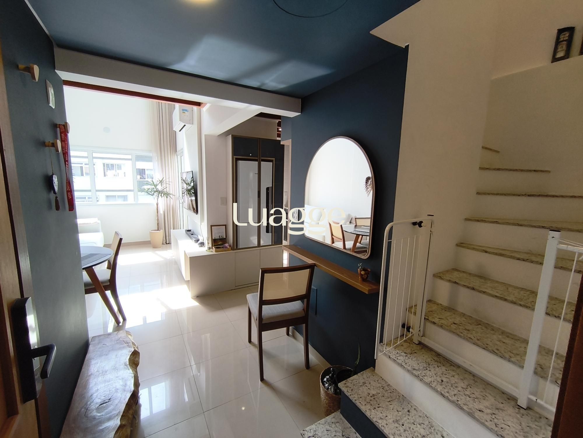 APARTAMENTO 2 DORMITÓRIOS - Imóvel duplex com 61,96 m² de área privativa e 1 vaga de garagem coberta e escriturada. O primeiro pavimento dispõe de living para dois ambientes com pé-direito duplo, banheiro auxiliar, cozinha, área de serviço e sacada com churrasqueira. No segundo pavimento, encontram-se os 2 quartos, sendo 1 suíte com closet (atualmente utilizado como escritório). Há viabilidade para ampliar o mezanino com um investimento aproximado de R$ 15.000 (ref. abril/2026), permitindo a criação de um terceiro dormitório ou a expansão da suíte atual, o que reduz o pé-direito duplo. O imóvel será entregue completamente mobiliado, incluindo sistema de automação para iluminação, cortinas e fechadura digital.